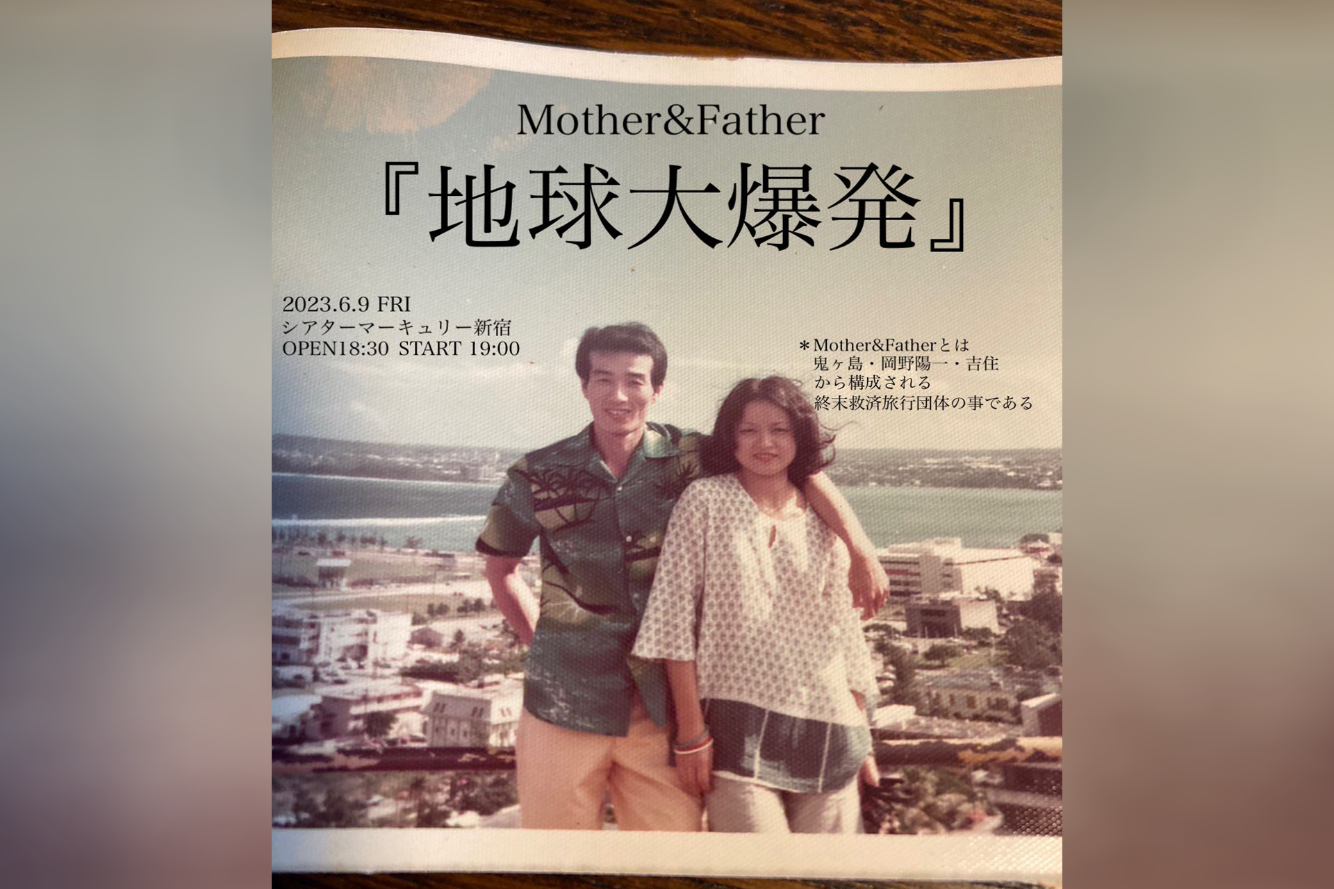 ■公演概要 プロダクション人力舎所属の彼ら3組による新ユニット「終末救済旅行団体『Mother&Father』」に加えて永田敬介がおおくりする初コントライブ。