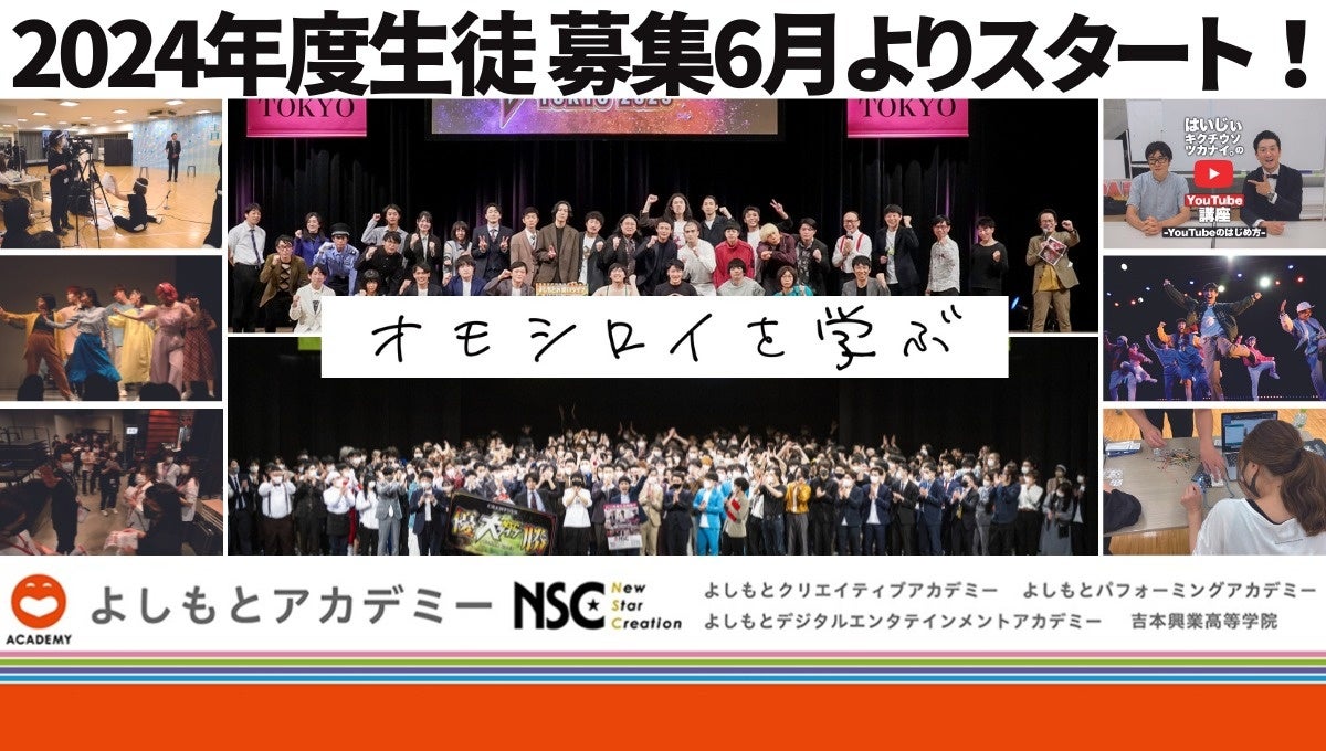 2023年6月1日(木)より、よしもとアカデミーでは東京校、大阪校ともに2024年度生徒を募集開始します。