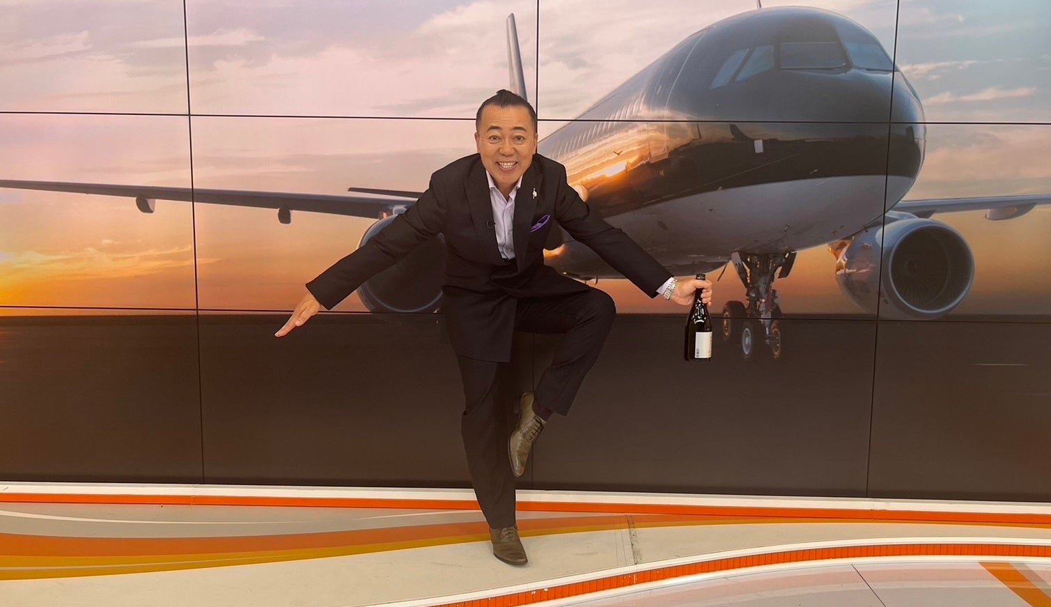 冒頭からハイテンションなゴルゴ松本さんが登場。熱のこもった言葉で、1921年創業以来その銘柄を守り続ける澄川酒造場が、スターフライヤーのために特別に醸造した「東洋美人 純米大吟醸 愛山」をご紹介します。MCを巻き込んだ“あの”ポーズも飛び出し、フロアディレクターが思わず吹き出す場面もあり、スタジオ内は終始笑いの絶えない収録となりました。ゴルゴ松本さんらしさ全開の体全体を使ったMCをお楽しみに。本放送は6月1日(木)よりスターフライヤー機内でご覧いただけます。
