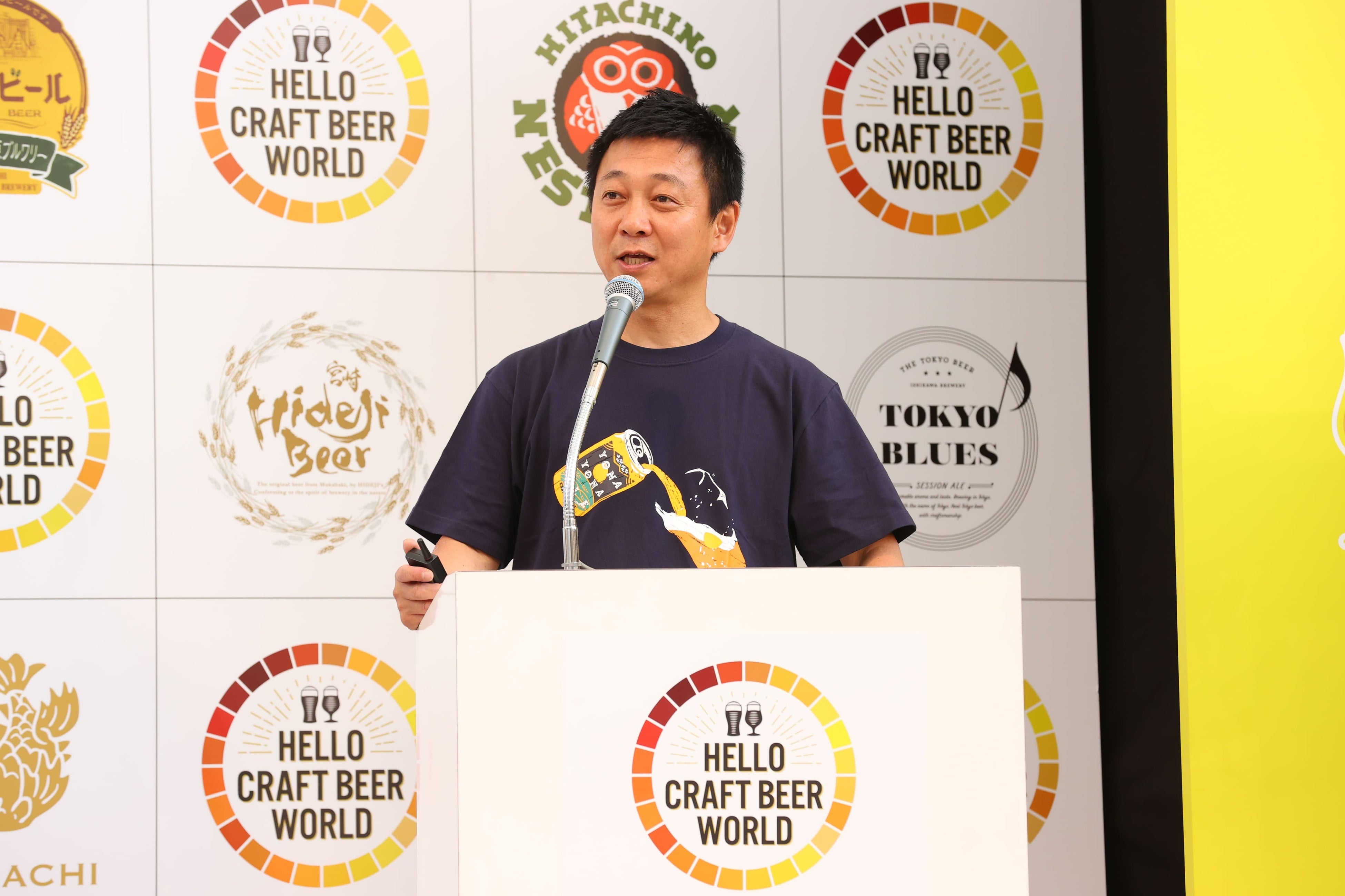 また、 「国内においてクラフトビールを根付かせるためには一社だけでは難しく、一緒にカテゴリーの定着を目指していきたい」と語り、クラフトビールカテゴリー創造を目指し、クラフトオールスター体験会『HELLO CRAFT BEER WORLD』開催を発表。「クラフトビールの世界をご堪能ください!」と開催に込めた思いを発表し、開会を宣言しました。