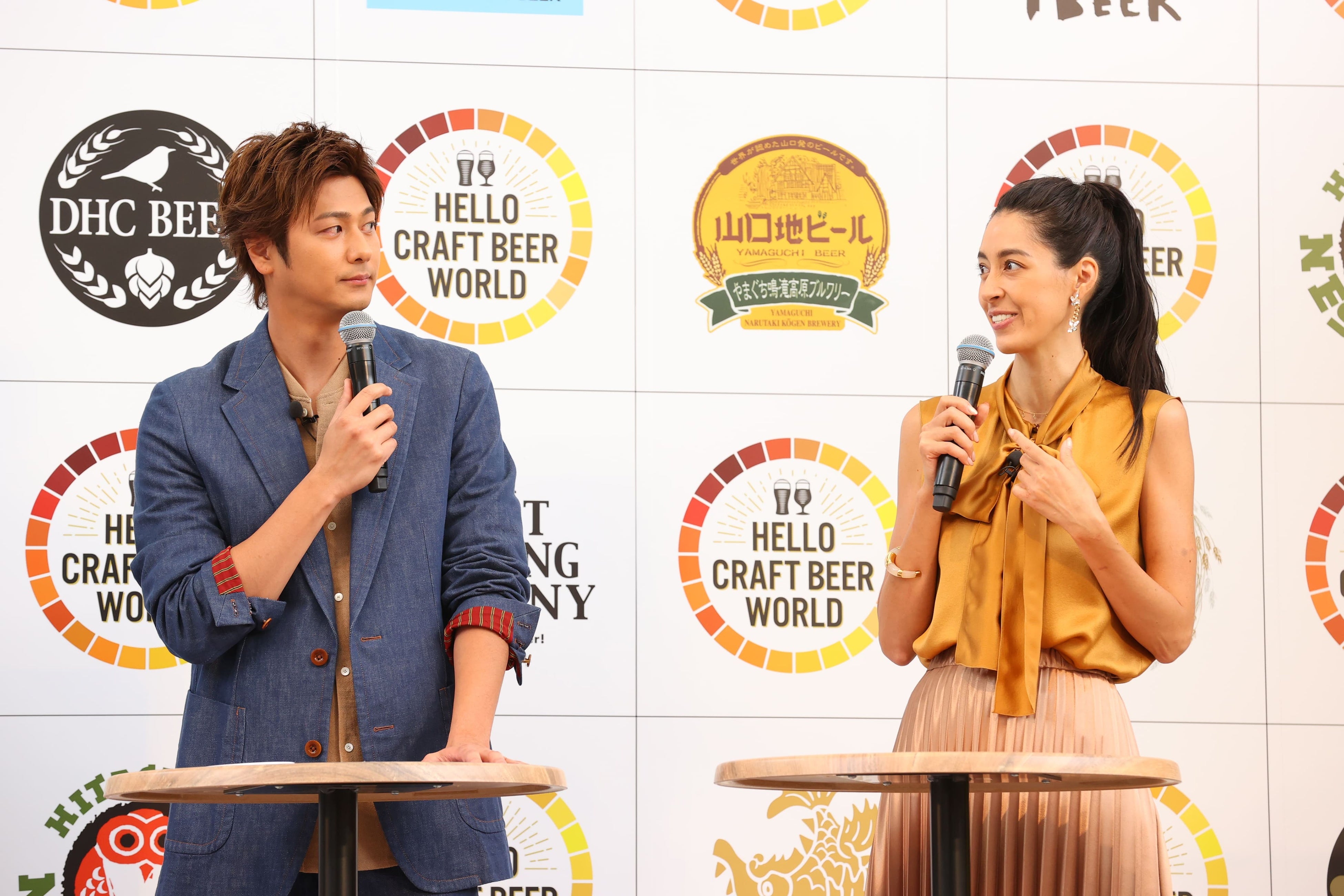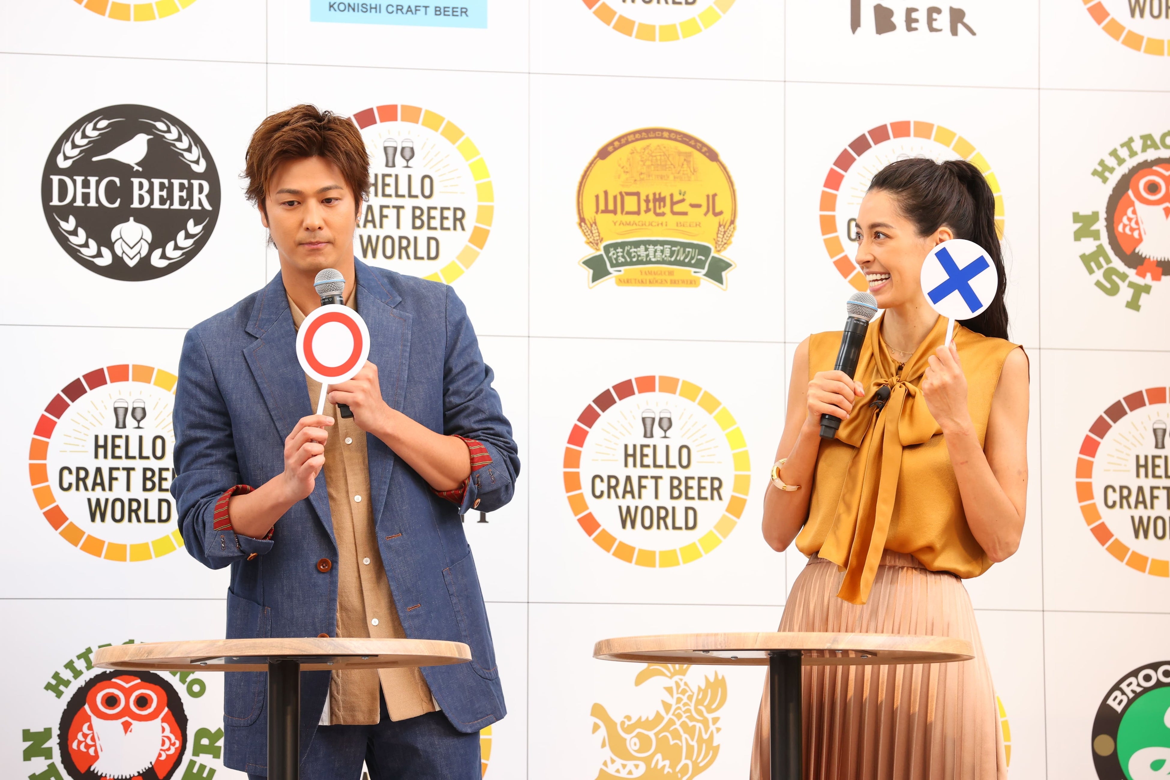 第2部では、お客様第一号として速水もこみちさん、森泉さんが登壇し、MCより『HELLO CRAFT BEER WORLD』の楽しみ方を紹介。説明を受けた森さんは「どんな風にペアリングをするのか気になります、新しい発見が楽しみです」とコメント。続いて、クラフトビールトークではマスターブリュワーの田山が登壇し、「まだ飲んだことがない、楽しみ方がわからないという方が多い。クラフトビールは特別なビールじゃないんです。クラフトビールを知ると豊かな時間を過ごせるので、1人でも多くの方に知ってもらいたい」と『HELLO CRAFT BEER WORLD』開催にかける思いを語りました。