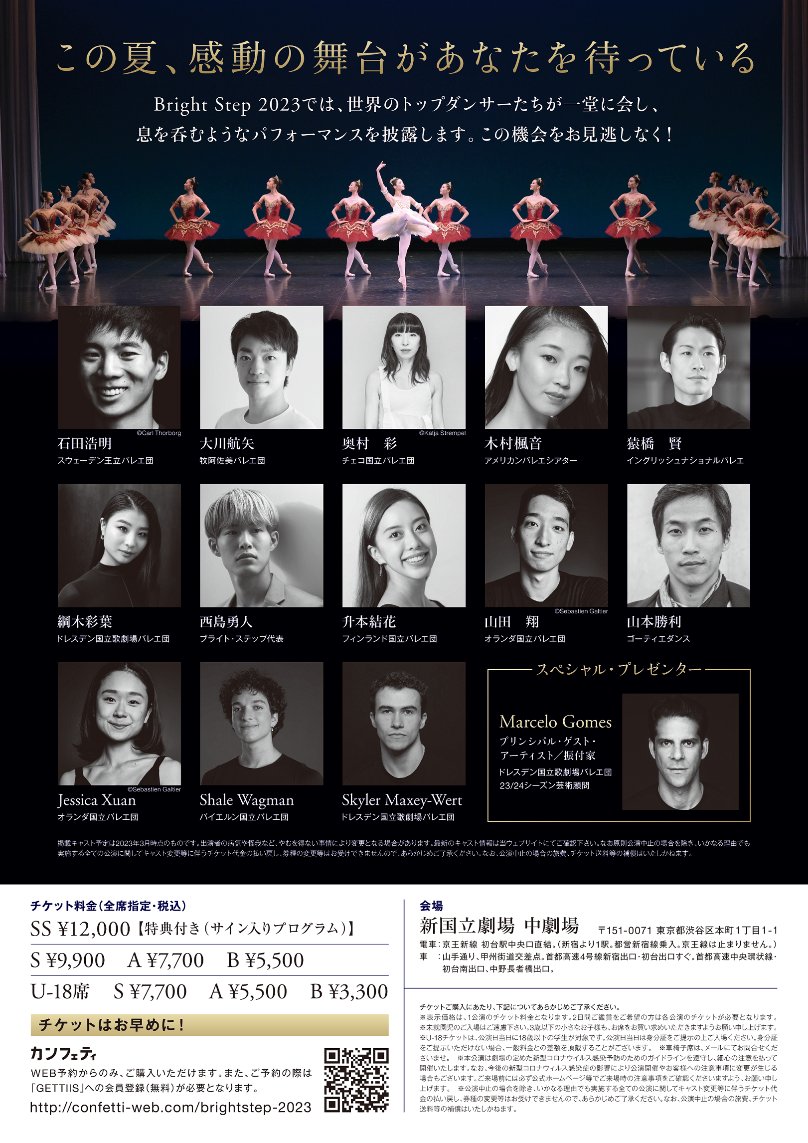 若手の登竜門のローザンヌ国際バレエコンクール金賞受賞者や、世界三大バレエコンクールのモスクワ国際バレエコンクール金賞受賞者など、今年も全7ヶ国で活躍する世界トップダンサーが一堂に会し、息を呑むようなパフォーマンスを披露します。Bright Stepとして、初の新国立劇場での上演と外国人ダンサーの参加を予定しております。