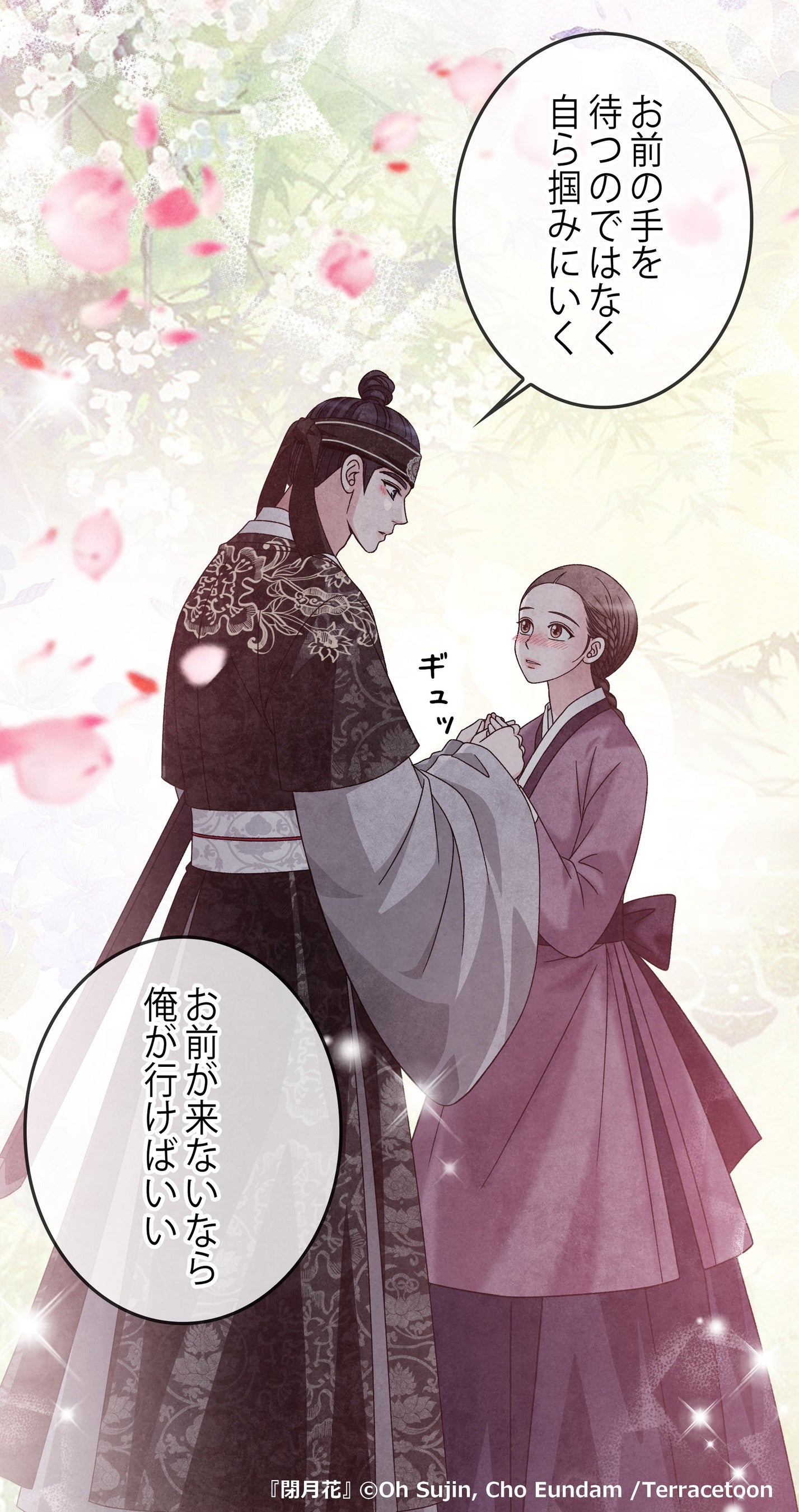 “閉月花”という謎多き花に隠された2人の甘くて切ない関係性はもちろん、回を重ねるごとに増していくギョムからの“胸キュンセリフの嵐”に「尊死」する読者が続出!
