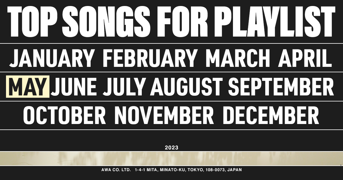 AWA株式会社(本社:東京都港区、代表取締役CEO:冨樫晃己)が運営する、サブスクリプション型(定額制)音楽ストリーミングサービス「AWA(アワ)」は、2023年5月1日(月)から5月31日(水)までに、ユーザーが作成したプレイリストへ採用された楽曲を集計し、5月度の『プレイリスト採用楽曲ランキング』を発表いたしました。