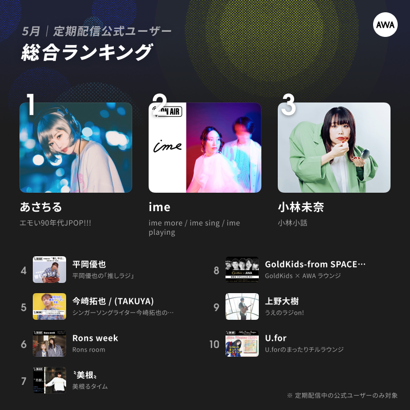 ■2023年5月定期配信AWAラウンジ人気ランキングTOP10