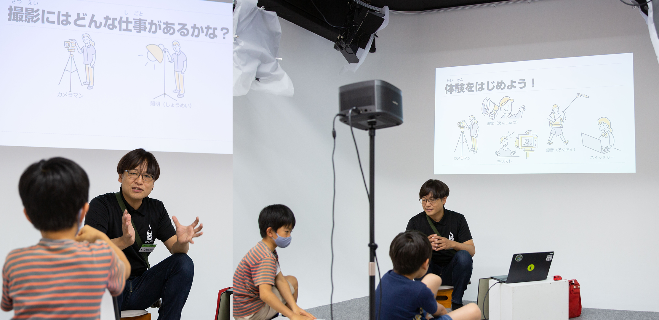 前半に行われる講義では、映像にできること、映像の歴史や撮影スタッフの役割などを知ることができ、ワークシートを一緒に取り組むことで、体験する内容への理解を深めて、学びを持ち帰ってもらえる内容になっている。