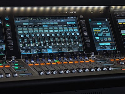 今回発売する『DM7』『DM7 Compact』は、ライブなどのイベント会場や、劇場・放送・音楽制作スタジオなどの固定設備に最適なデジタルミキシングコンソールです。『DM7』は幅79.3cm、奥行56.4cmの筐体に32入力/16出力と120入力チャンネルのミキシングキャパシティを、『DM7 Compact』は幅46.8cm、奥行56.4cmとコンパクトサイズながら16入力/16出力と72入力チャンネルのミキシングキャパシティを備えています。また、最大96kHzのサンプリングレートや、多チャンネルを1本のケーブルで伝送可能なオーディオネットワーク規格「Dante」に対応しました。ゲインをリアルタイムで最適化し自然な音量制御を実現する「Dan Dugan オートマチックミキサー」を標準装備し、台本のないスピーチなどでもハウリングを抑制したミキシングも可能です。さらに、1台の『DM7』『DM7 Compact』を2台の別々のミキサーのように機能させる「Split Mode」や準備の時間を短縮できる「Assist」機能を新たに搭載しました。操作画面は、直感的な新ユーザーインターフェースを採用し、12.1インチのタッチスクリーンを『DM7』では2枚『DM7 Compact』は1枚搭載、レベルメーターなどを表示する7インチのタッチスクリーンを両モデルとも1枚搭載しています。『DM7 Control』は、パンナーやモニターコントール、シーンメモリーなどの操作が可能な『DM7』『DM7 Compact』専用のコントロール拡張ユニットです。