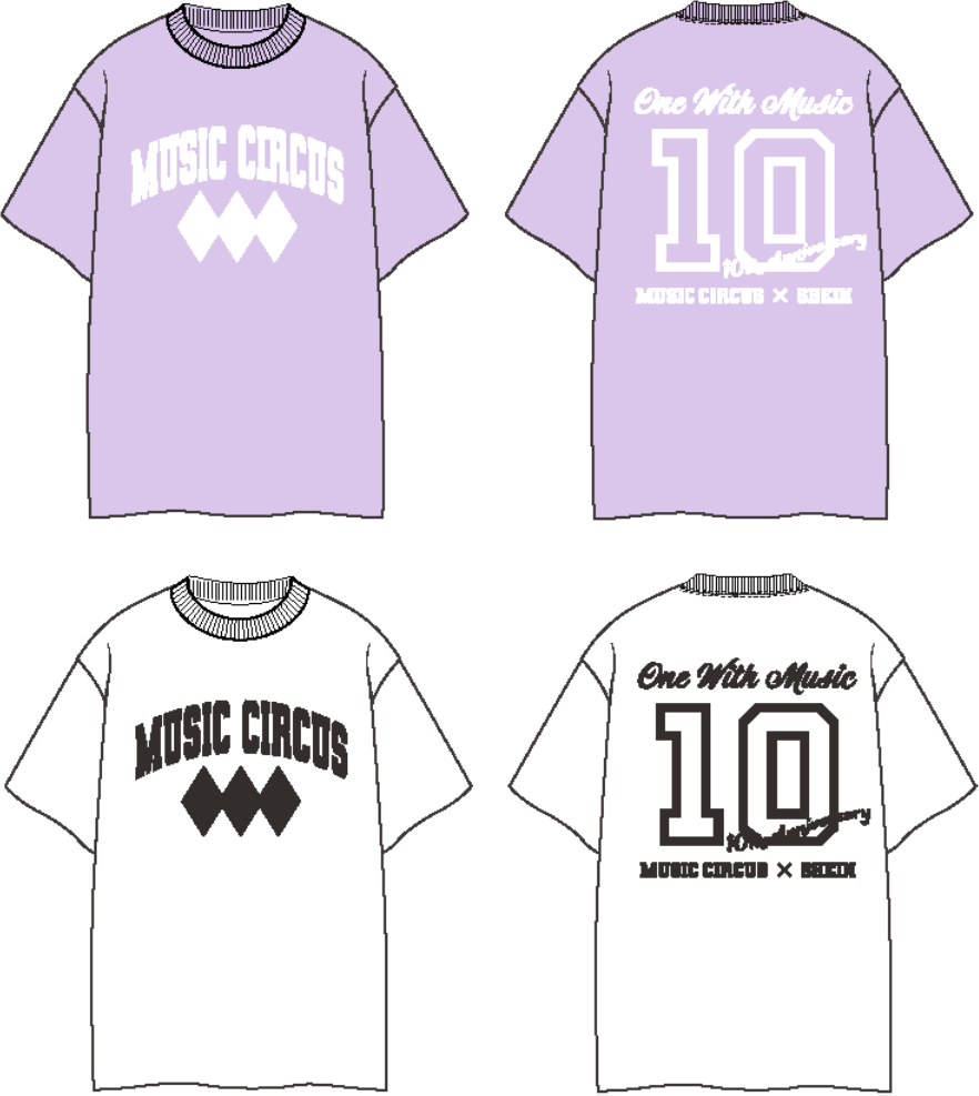今回販売する 「MUSIC CIRCUS ’23×SHEIN X オリジナルTシャツ」 は、「SHEIN」が手掛ける若手デザイナーのブランド立ち上げ支援プログラム『SHEIN X』とのコラボアイテムです。メンズTシャツ1種類、メンズタンクトップ1種類、レディースTシャツ2種類の計4種類をご用意しておりますので、ぜひチェックしてみてください。