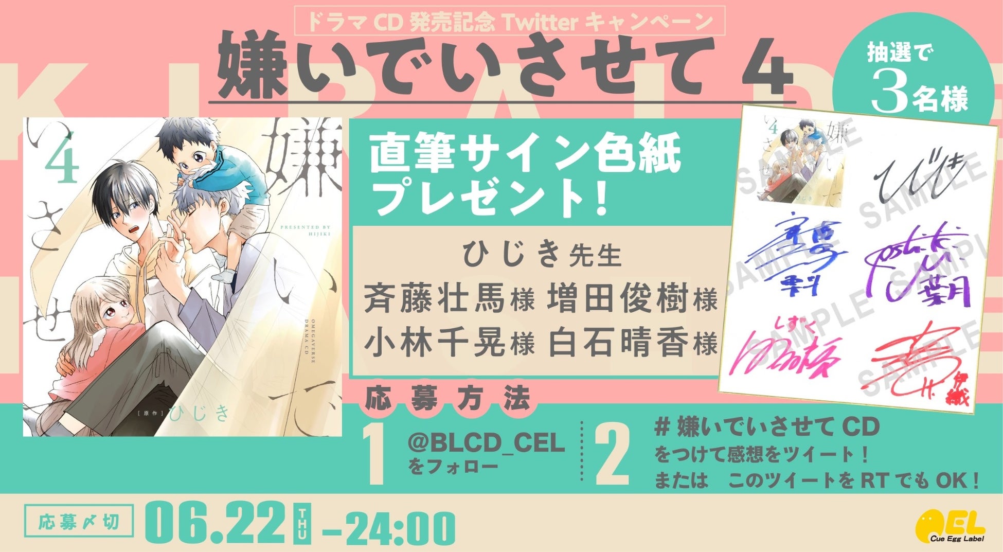 ドラマCD「嫌いでいさせて4」が本日2023年6月9日にコミックス5巻と同時発売!ドラマCD4巻&コミックス5巻連動購入キャンペーンも開催中!出演は斉藤壮馬さん、増田俊樹さん、小林千晃さん、白石晴香さん!Twitterキャンペーンも開催中♪