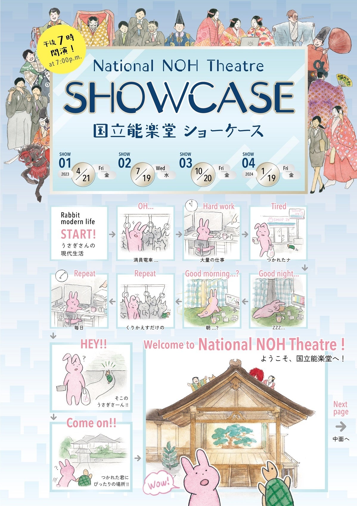 能楽(能と狂言)を初めてご覧になる方に向けた、入門公演です。開演前の18:30より能舞台にて出演者によるプレトークを行い、楽しく能楽の世界にご案内。わかりやすい現代語訳字幕で皆様の鑑賞をサポートします。