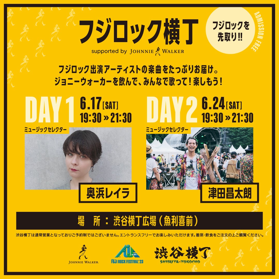 さらに6/17(土)6/24(土)の2日間は、渋谷横丁に時間限定で「フジロック横丁」が出現!フジロックにゆかりのあるミュージックセレクターを迎え、出演アーティストの楽曲をたっぷりお届けします!