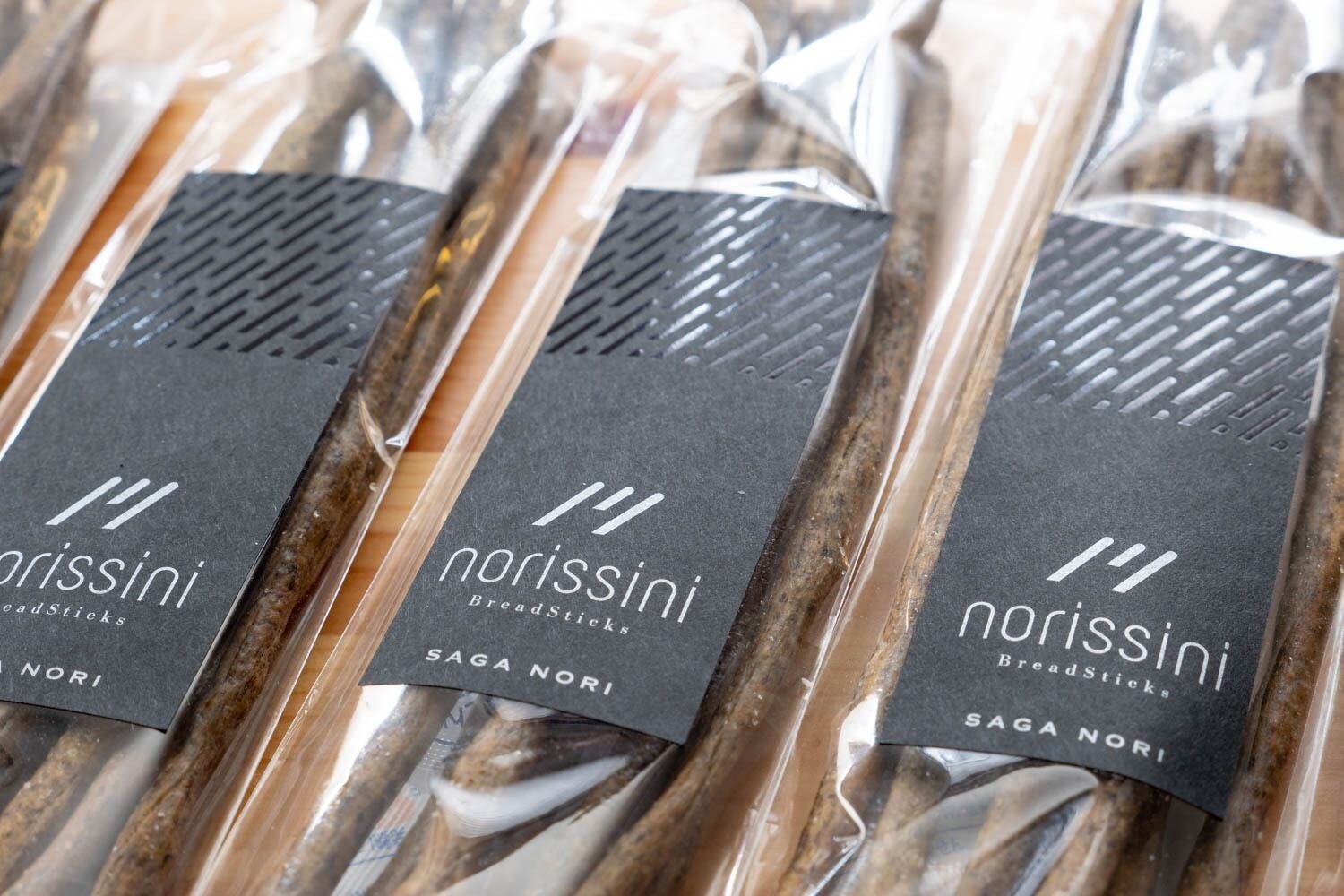 イタリアでは定番のスティック乾パンのグリッシーニに、佐賀有明海産の上質な海苔をたっぷりと練りこみました。