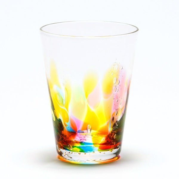 佐賀市重要無形文化財「肥前びーどろ」の人気商品「虹色シリーズ」のタンブラーやお猪口を、晩酌好きなお父さんに。