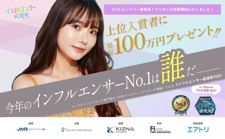 ネット上でさまざまな⼤⼿企業と企画を⾏うファーストイノベーションとマーケティングリサーチ機構が提携し、 『インフルエンサー総選挙2023』(公式サイト:https://influencer-sosenkyo.com/)をスタートしました。