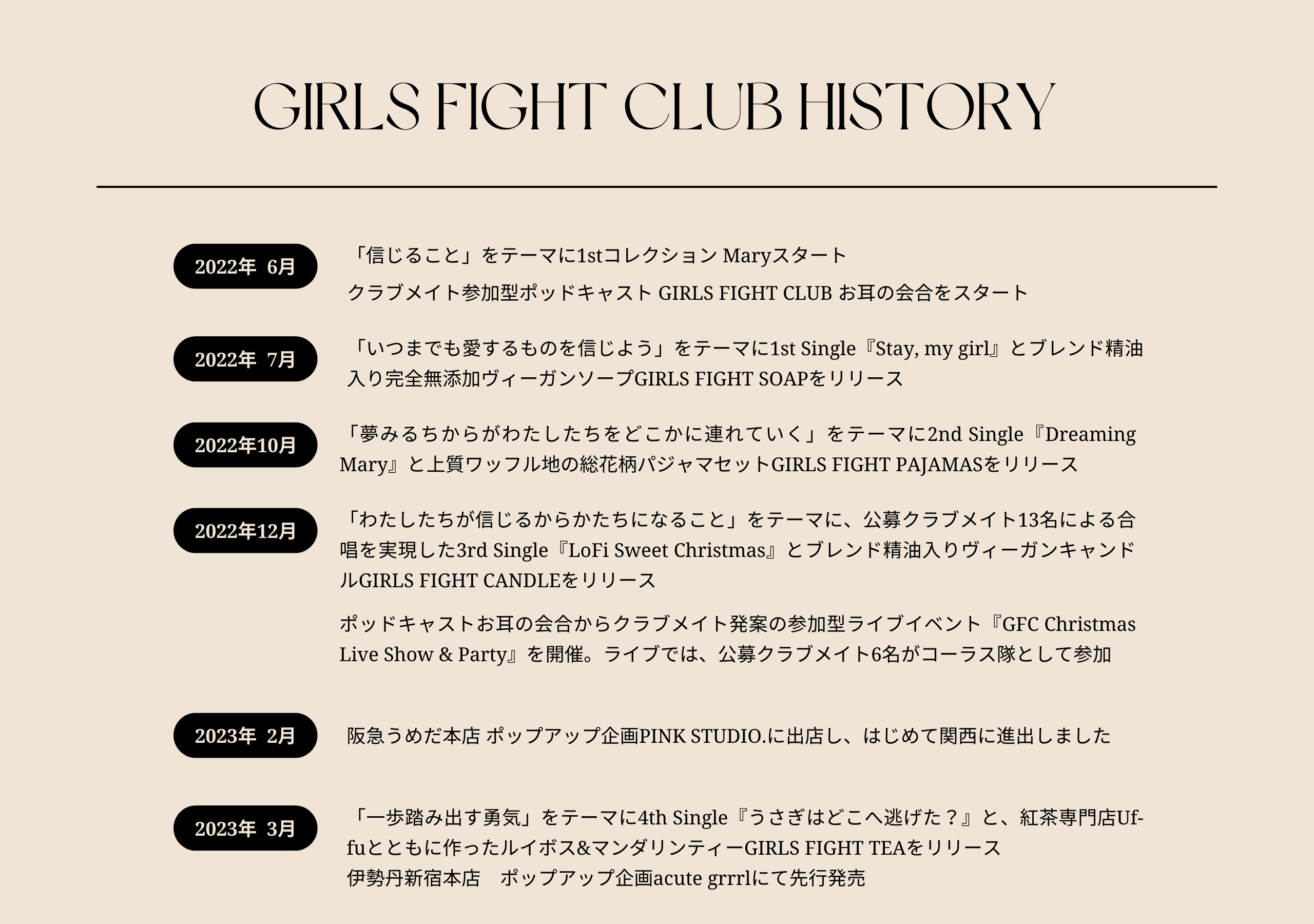 2022年、ガーリッシュを楽しむ全ての人を応援するクラブ・ブランド ”GIRLS FIGHT CLUB” を設立。