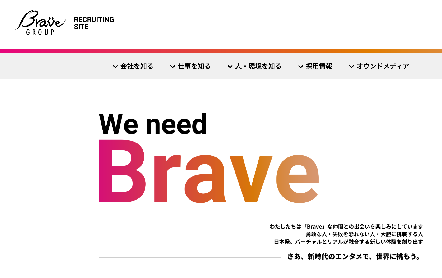 Brave groupの採用サイトでは、当社の特徴を知っていただくための様々なコンテンツをご用意しています。