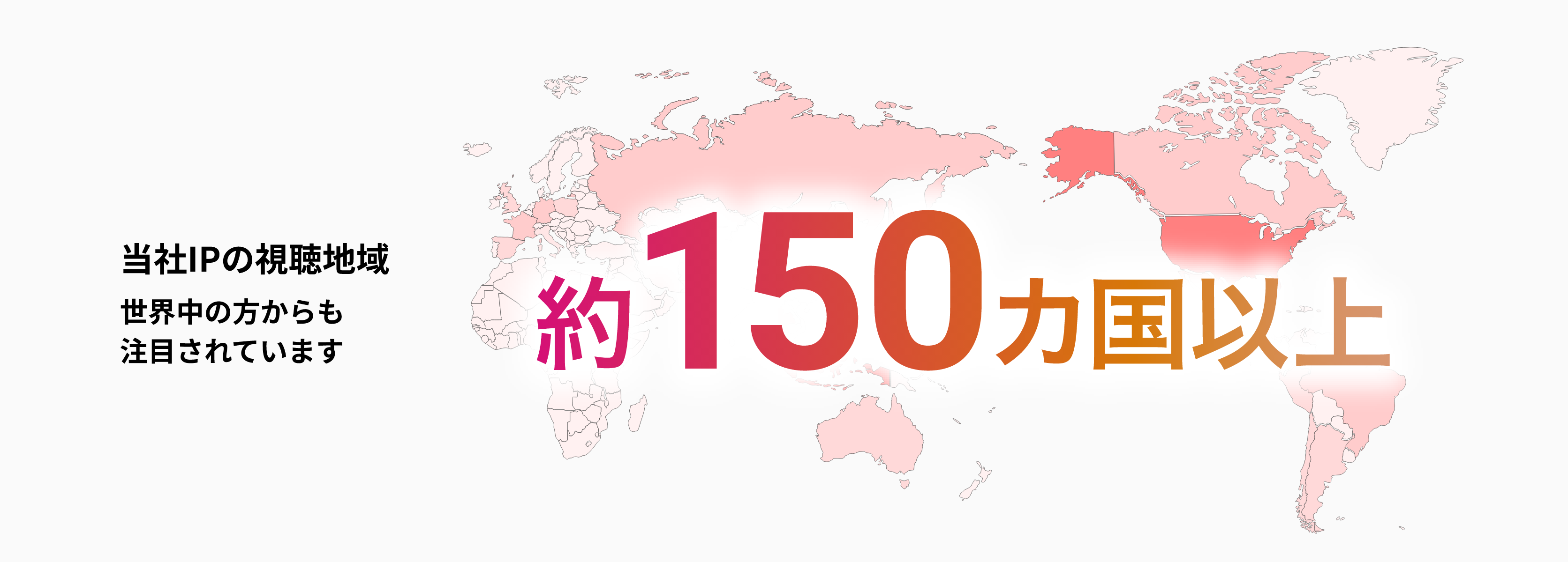 当社IPはさまざまな配信プラットフォームで150カ国以上の地域から視聴いただいています。