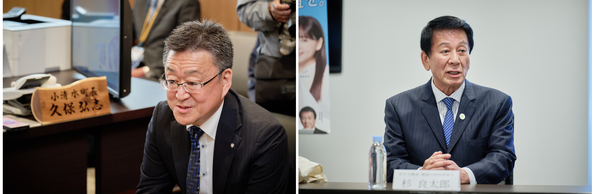 この度6月7日(水)に、健康行政特別参与である杉良太郎氏と健康クリエイターであるEXILE TETSUYA氏が北海道小清水町を訪問し、久保町長らと懇談を行いました。久保町長は、「町民の皆様が笑顔で安全な暮らしができるような、小さくても光る素敵な街にしたいというのをモットーにしています。人と人のつながりを強くし、コミュニティーを作っていくという思いで、この防災拠点型複合庁舎『ワタシノ』をオープンいたしました。」と5月28日にグランドオープンした、新庁舎を紹介しました。