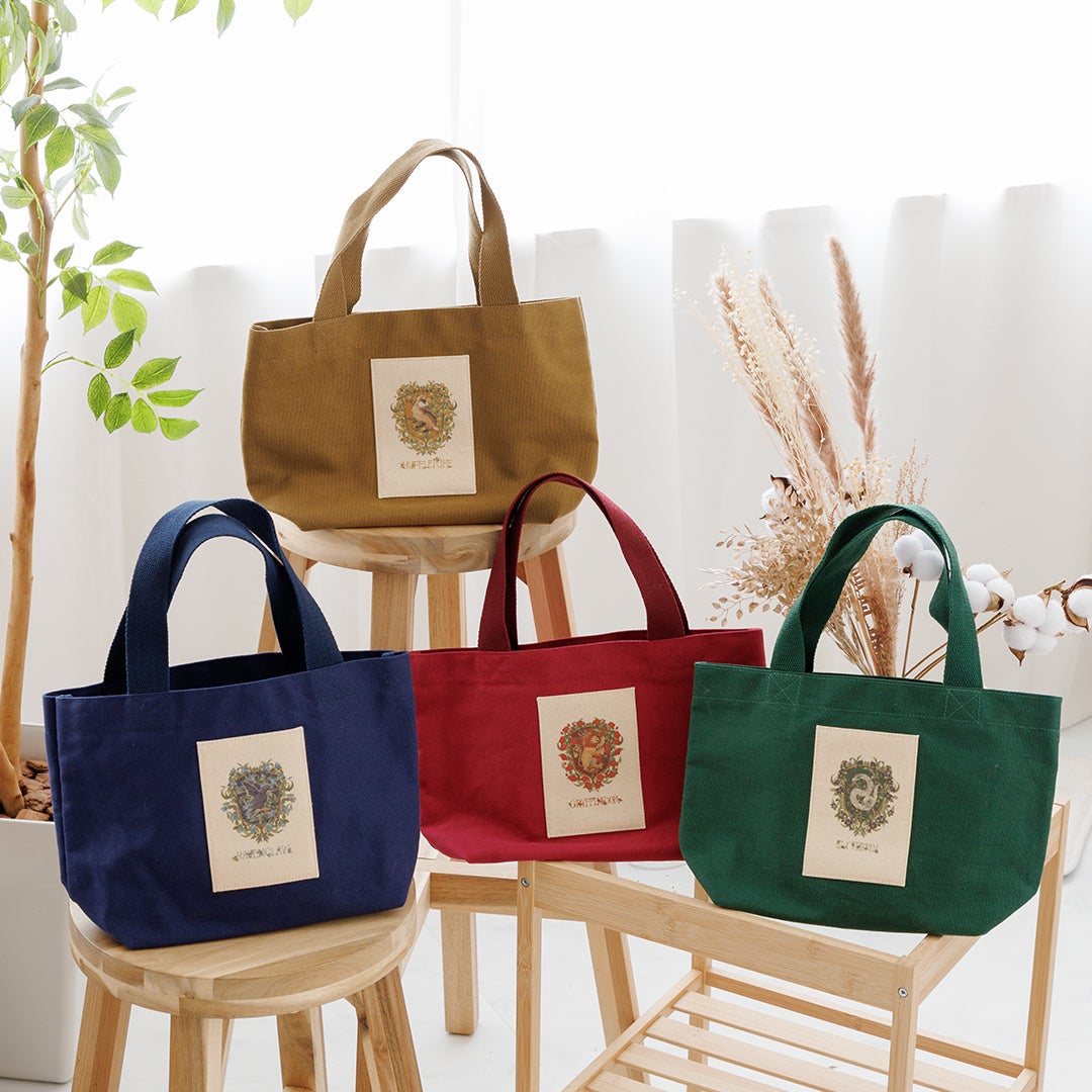 ホグワーツ4寮の象徴動物のネームが付いた、シンプルなデザインのミニトートバッグです。内生地は組分け帽子やお花が散りばめられたテキスタイルで、内ポケットが一つついています。