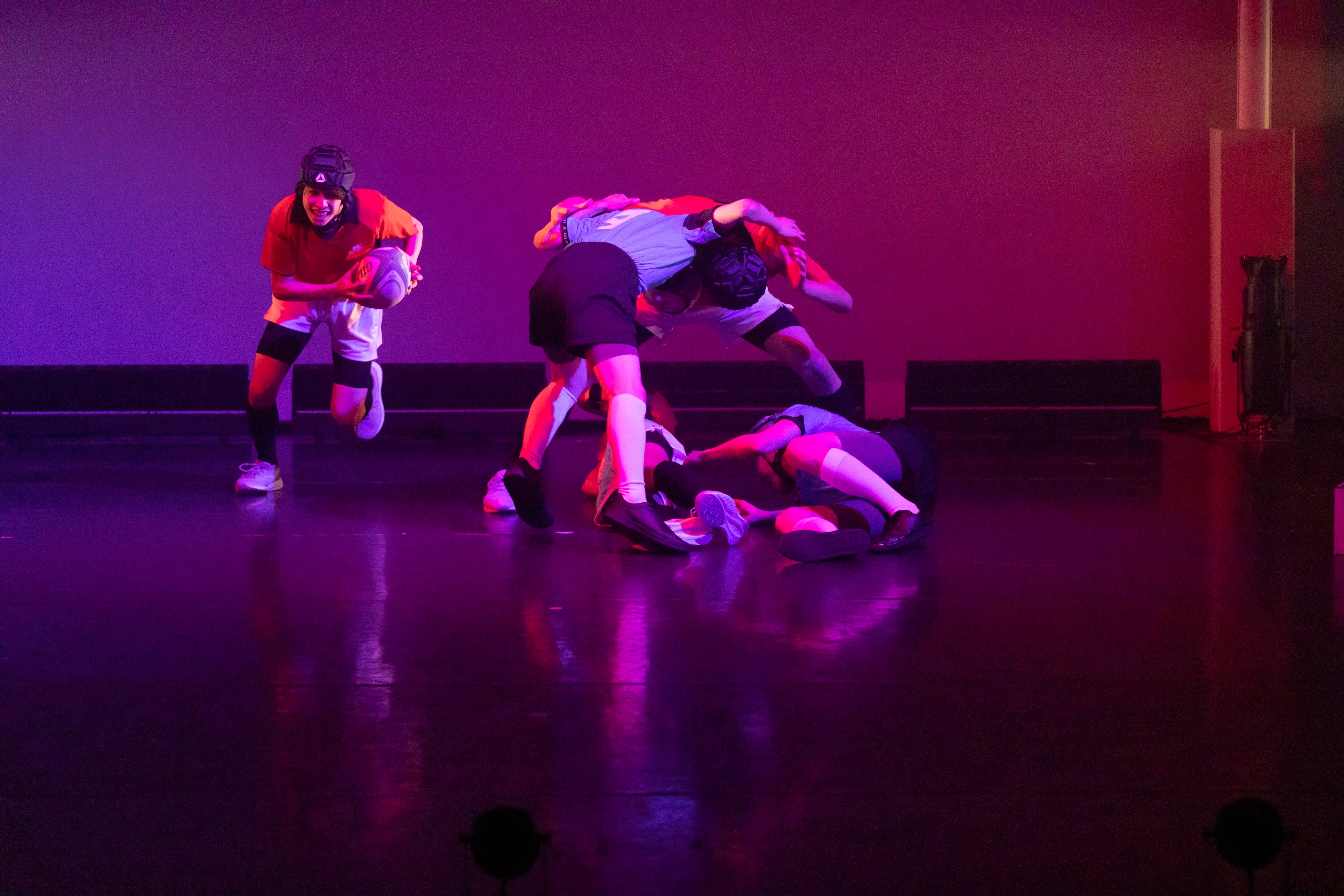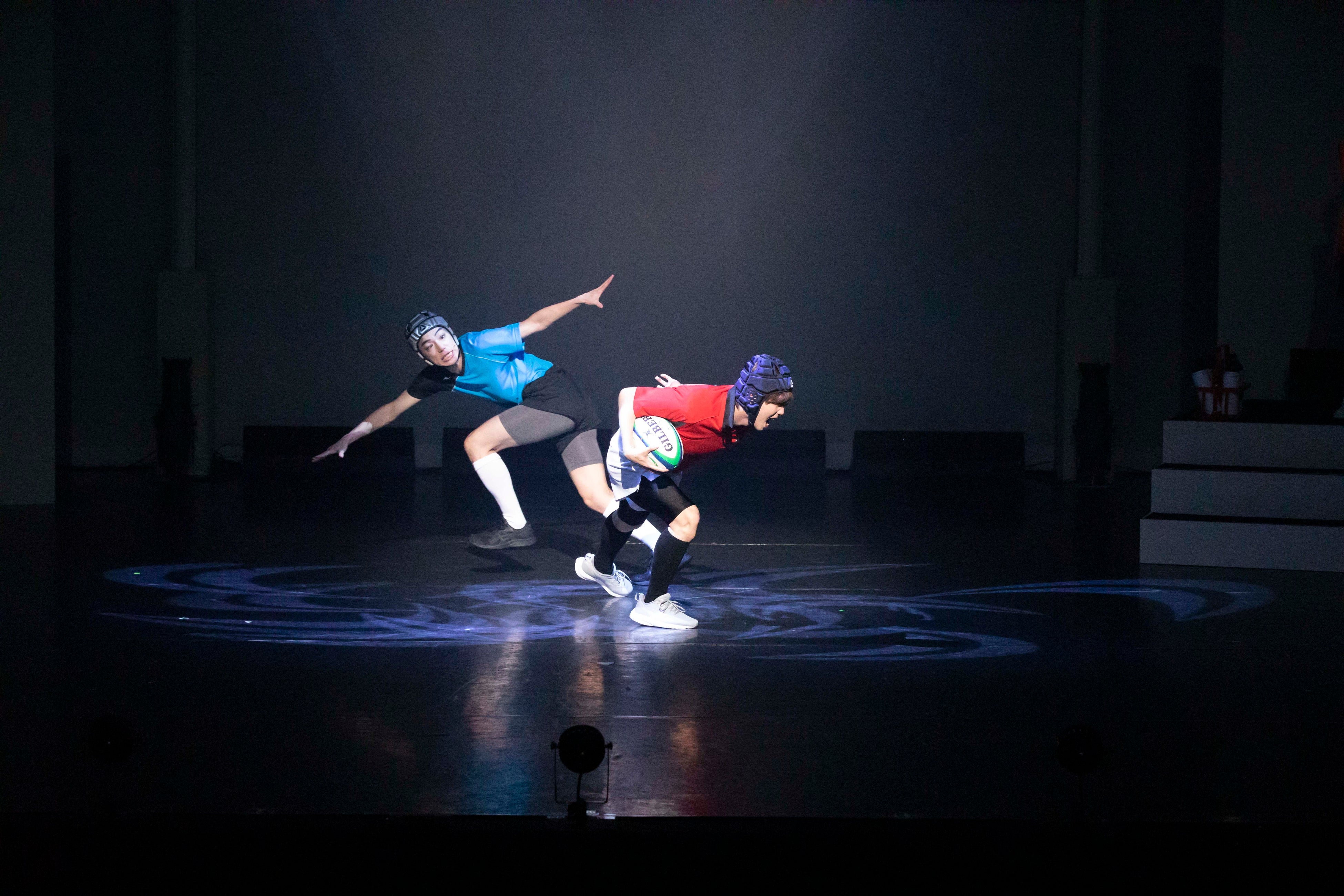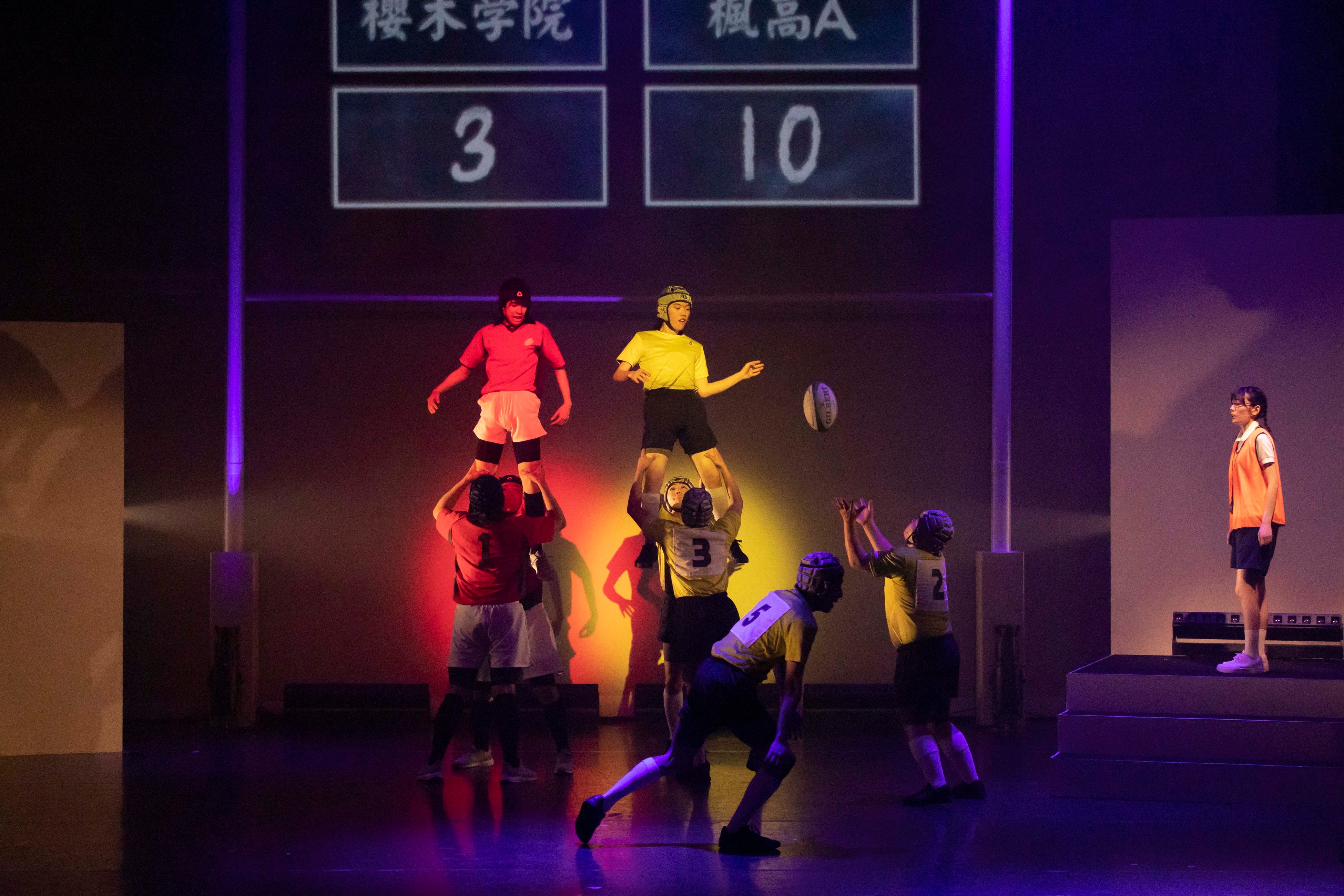 囲み取材の後、ゲネプロを公開。新任教師でラグビー部監督の酒田の苦悩と奮闘、素人集団のラグビー部の部員たちの挫折と成長、理事長と秘書の思惑などが描かれたストーリーが展開。そして、ステージ上を所狭しと駆け回り、パスをし、タックルし、トライするスピーディーで迫力のある試合のシーンも大きな見どころとなっていた。
