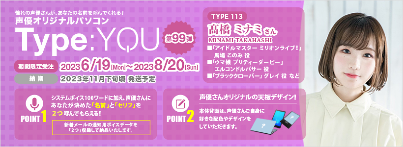 【声優オリジナルパソコン【Type:YOU】第99弾 商品ラインナップについて】