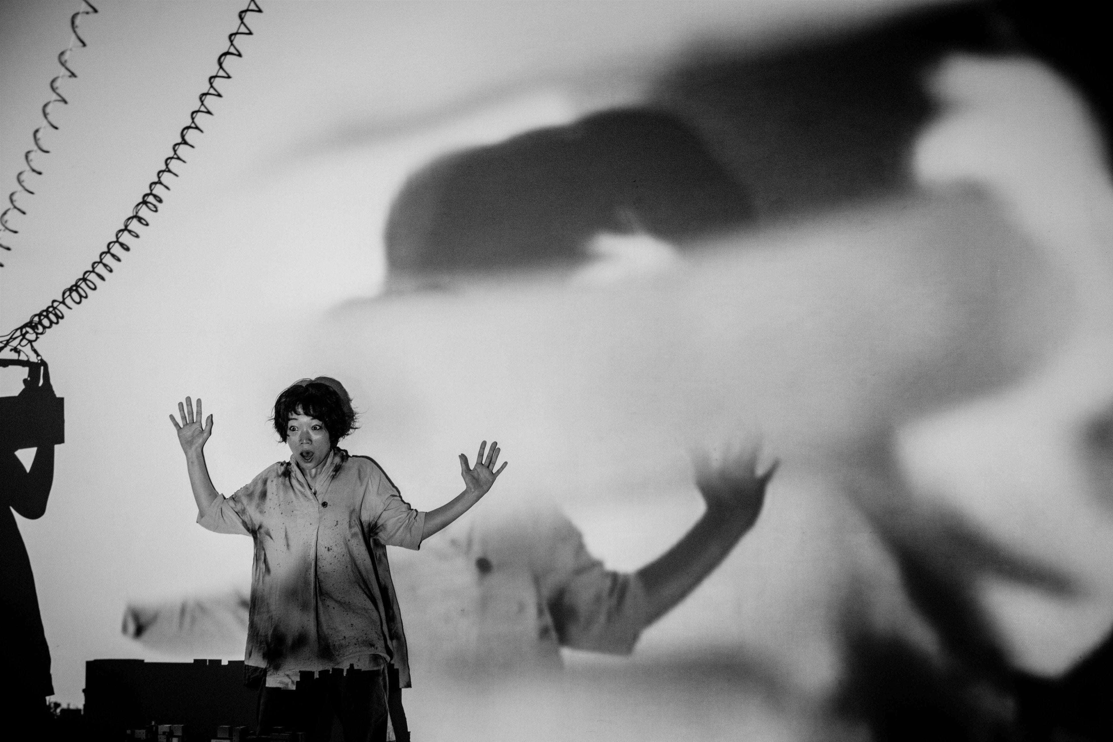 身体と声と歌と音楽と光と美術による、ダイナミズムと間合いと絶妙なる均衡という従来の小池さんの舞台に、今回は、映像が重ねられた。すでに準備されている映像と、新たに舞台の上で作り出されていく映像と、その映像にとらえられている今この瞬間の舞台の上の現実が、三重構造になって展開して、観る者の脳を揺さぶる…