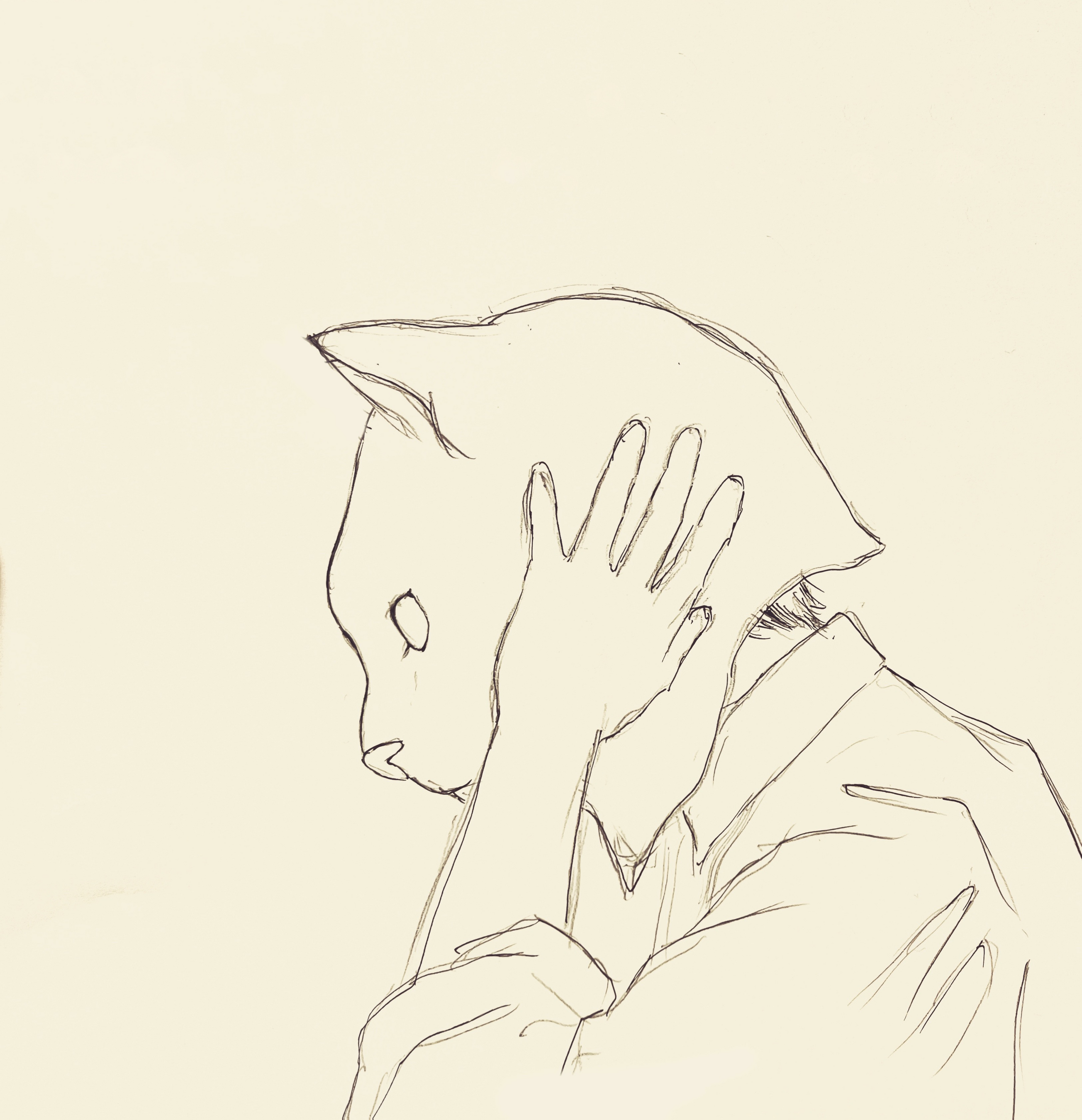 なお、今作のアートワークも松木美定自身が描いたもの。鉛筆の下書きをそのまま生かした繊細な線で、彼のメインアイコンである猫と思われる被り物を脱ぐ瞬間をとらえている。