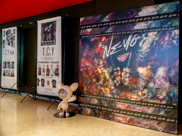 「NE-YO TOKYO LIVE 2023」におけるイメージビジュアルの制作、印象的な世界観のライブ会場フォトスポット、公式ライブグッズのデザイン・アートワークは、全てMitsuhiro Higuchiによるもの。会場ではオリジナルキャラクター、「STRONG CAT」とNE-YOのコラボ3Dフィギュアも展示されました。