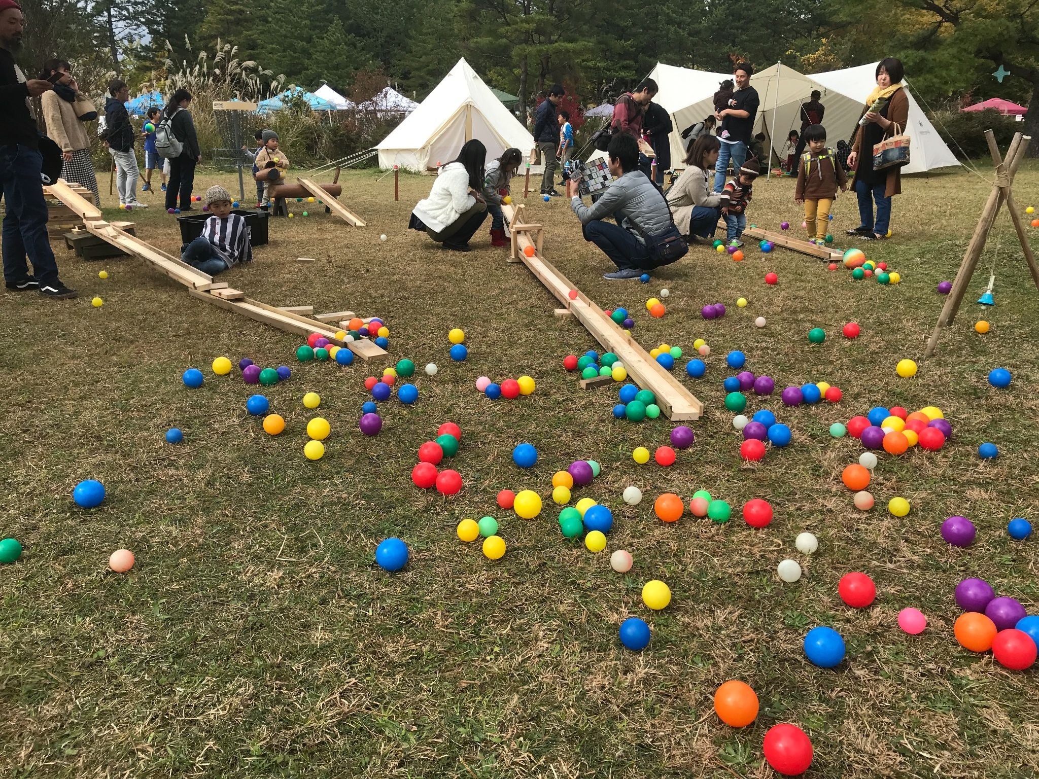 木製レールを使ってボールを転がしてみましょう。木製レールを動かすといろんなコースを作る事ができるので、親子やお友達と一緒にコースを作ってボールを転がしてみましょう!