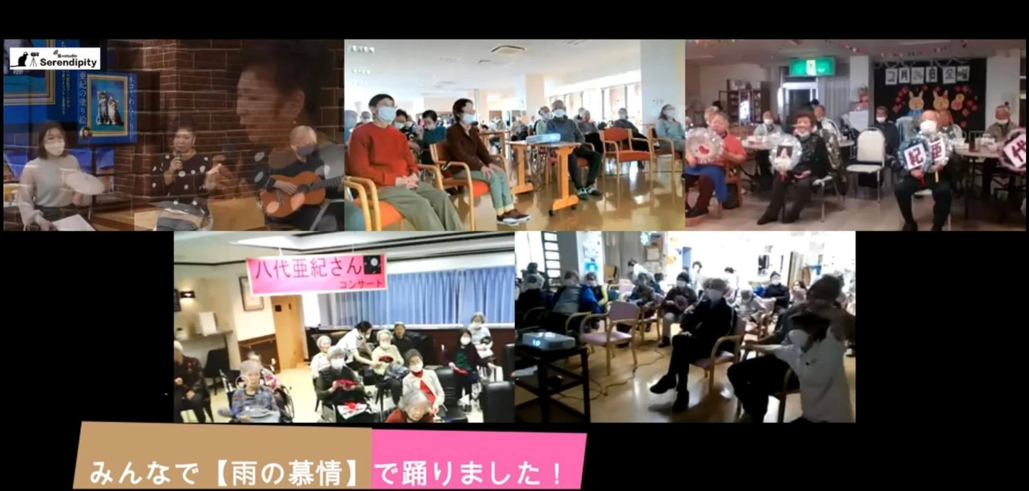 吉田エンタメ社は八代亜紀氏と共に、2021年3月からコロナ禍で行動を制限されて来た高齢者施設の利用者・延べ300,000人へ向けて無料のオンラインコンサートを開催してきた実績がある。