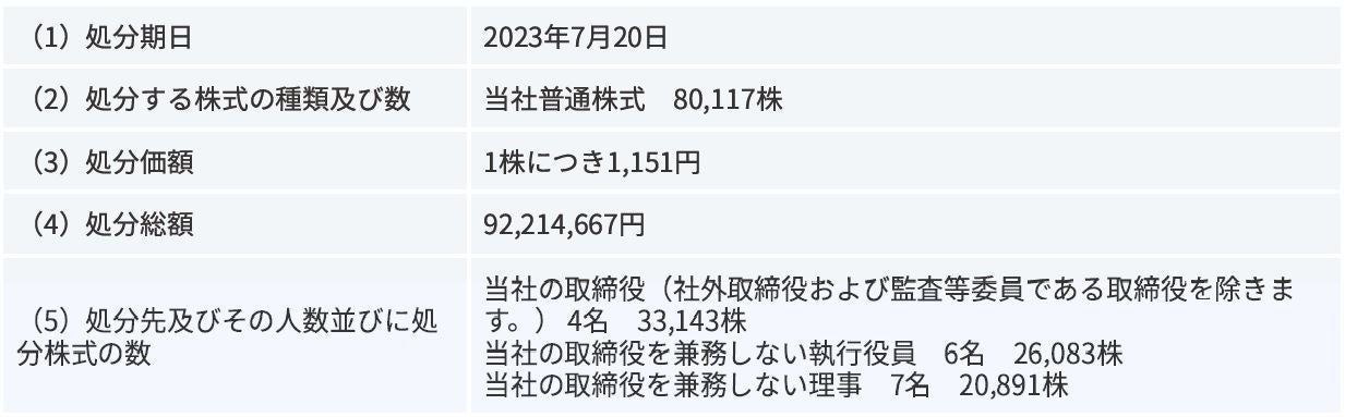 2023年6⽉21⽇付「譲渡制限付株式報酬としての⾃⼰株式の処分に関するお知らせ」より抜粋いたしました。