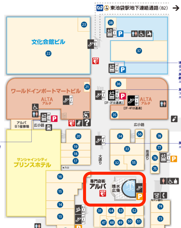 池袋・サンシャインシティ 噴水広場(アルパB1)