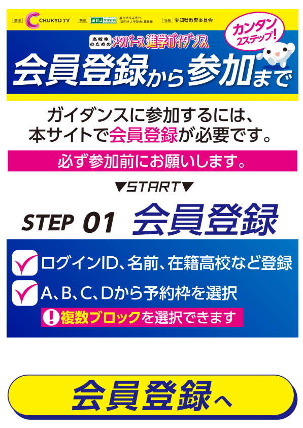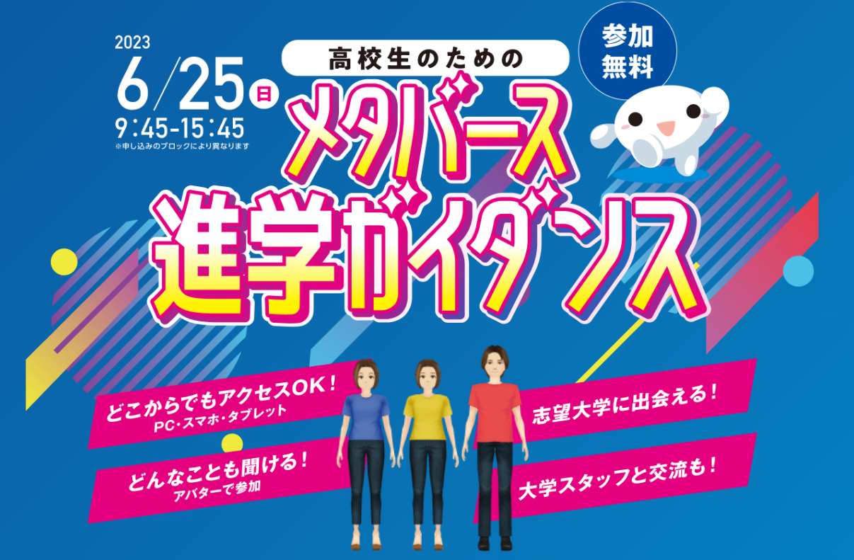2023年6月25日に、中京テレビ放送株式会社(本社:名古屋市中村区 代表取締役社長:丸山公夫)と、廣告社株式会社(本社:東京都新宿区 代表取締役社長:西山 憲一)が主催するイベント「高校生のためのメタバース進学ガイダンス」が、開催期間中ずっと申し込み可能になりましたことを発表いたします。