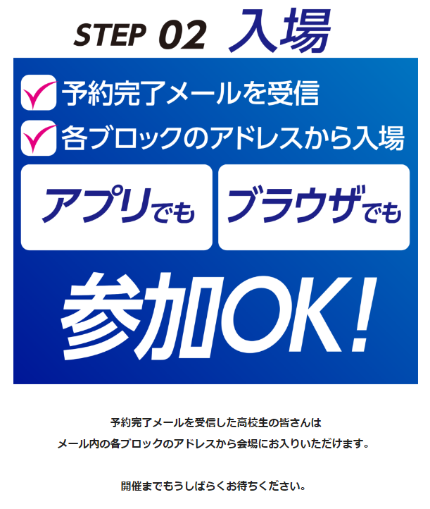 大学進学を目指す高校生の皆さんと大学スタッフがアバターとなり、各大学の最新情報をキャッチしたり、ボイスやテキストで質問できる新時代の進学ガイダンスです。スマホはもちろん、ご自宅のパソコンなど、場所を選ばず自由に参加可能です。