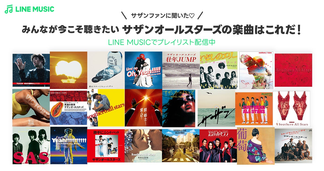 LINE MUSICでは、サザンオールスターズのデビュー45周年を記念して、LINE MUSICユーザーを対象に、10代~70代のサザンオールスターズファンにアンケートを実施。実際にファンが選んだサザンオールスターズの楽曲をまとめたオリジナルプレイリストを公開します。