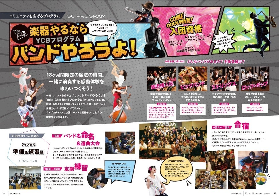EYS音楽教室で大人気のコミュニティーを広げるプログラム、「バンドやろうよ!Yoko-Chin Bandプログラム」(https://art-lesson.2nd-community.com/band_class)は、練習・合宿&ライブ演奏―9ヶ月を2ターン繰り返す18ヶ月間限定のバンド活動で、ライブのチャンスは2回一緒にバンドを作り上げていく醍醐味を味わえるものです。