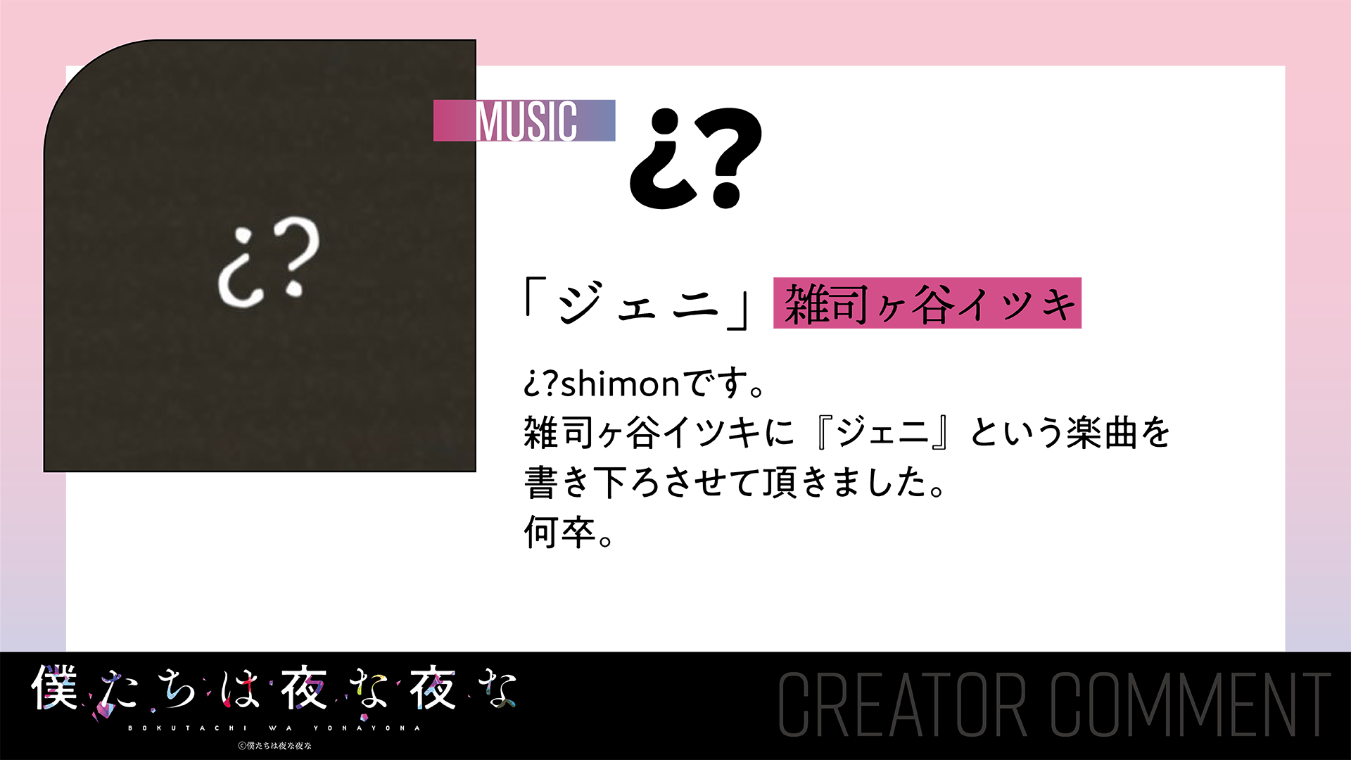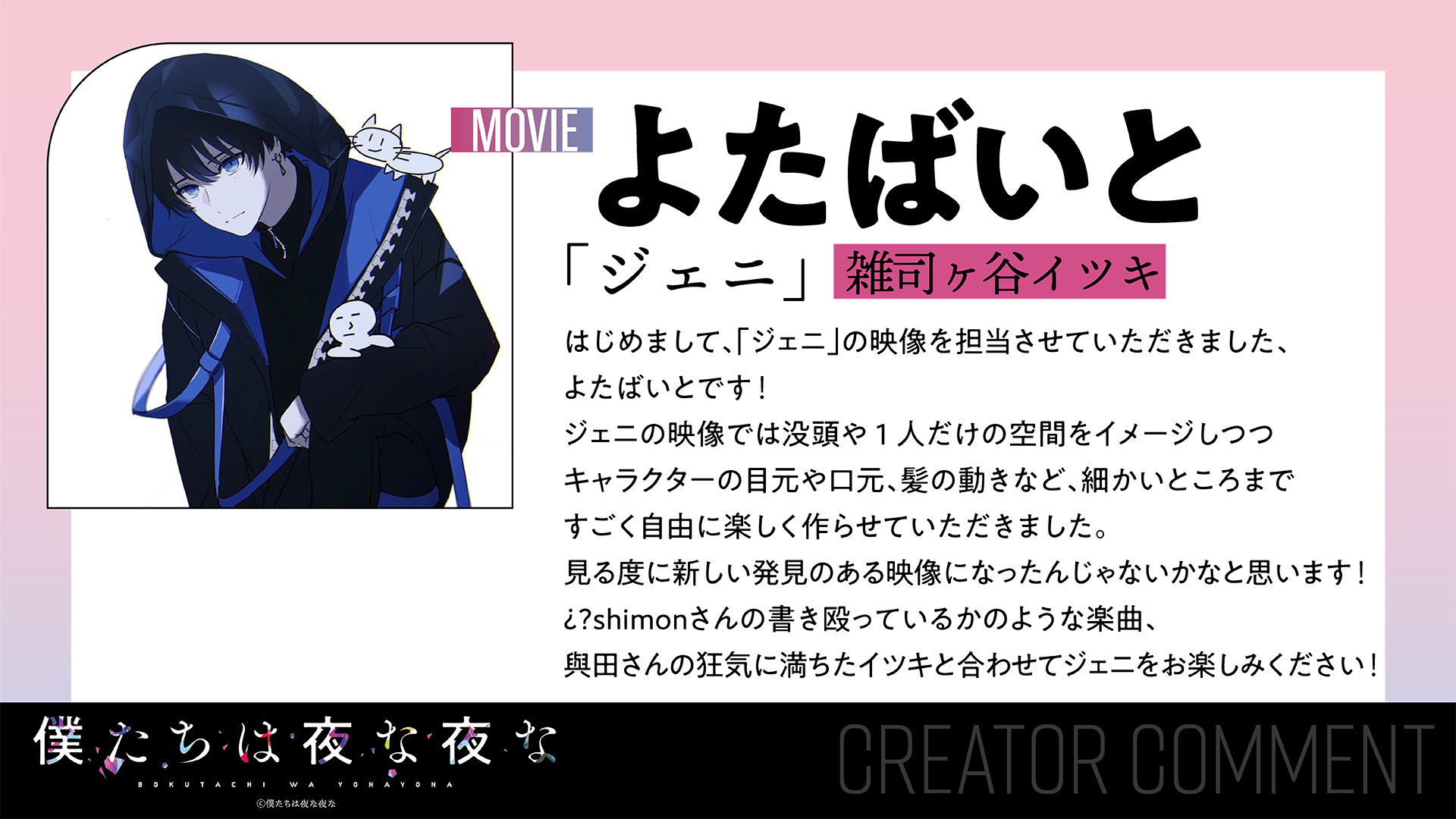 ボカロP×歌い手×声優「僕たちは夜な夜な」第3弾楽曲『ジェニ』のMV公開! 今後のコラボ発表も‼