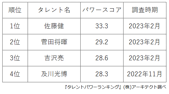 本ランキングは、2023年2月度に実施したタレント調査データ(一部過去実施データ)を利用し、タイトルに応じてランキング形式でまとめたものです。