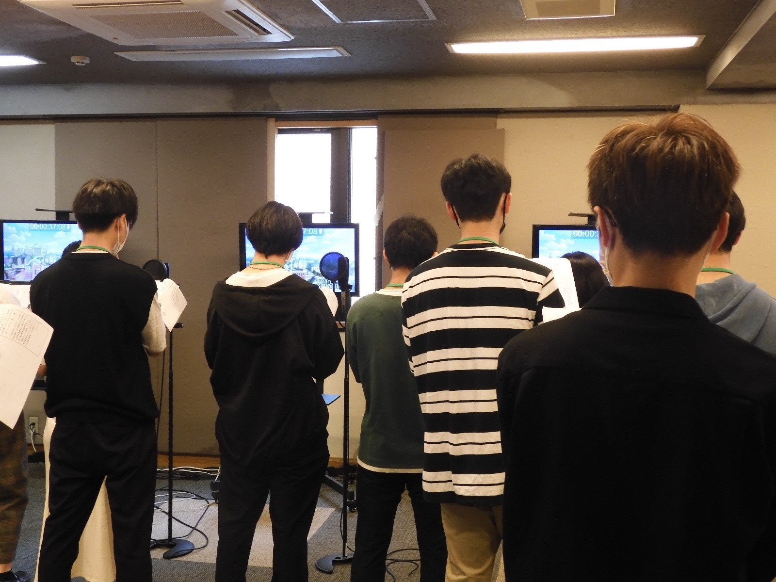 声優のお仕事に興味がある参加者の皆さんと在校生たちが、今井さんと一緒にアニメのアフレコにチャレンジしました。