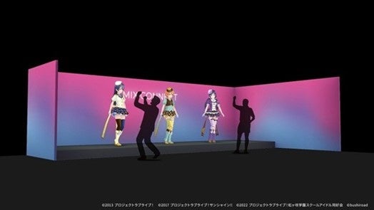 本イベントではMRデバイス「Meta Quest Pro」を装着し、「lily white」の「園田海未」、「東條希」、「星空凛」が歌う楽曲である、「微熱からMystery」、「春情ロマンティック」の二曲を最新デジタル技術により等身大で鑑賞いただけます。