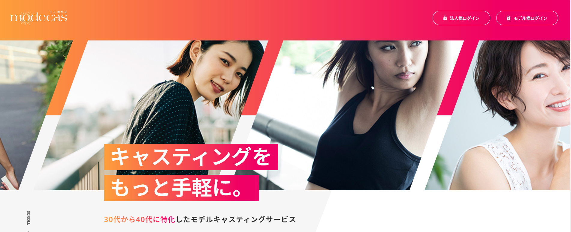 モデキャスとは、「モデルとして活躍したい方」と「キャスティングを利用したい方」、両者をつなぐモデルキャスティングサービスです。
