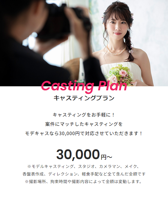キャスティングプランは業界では低コストの30,000円から。
