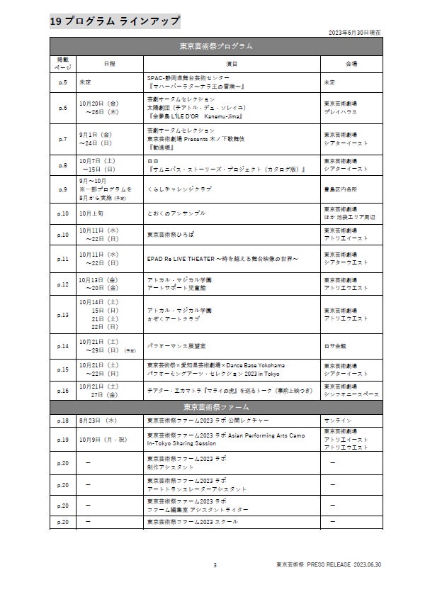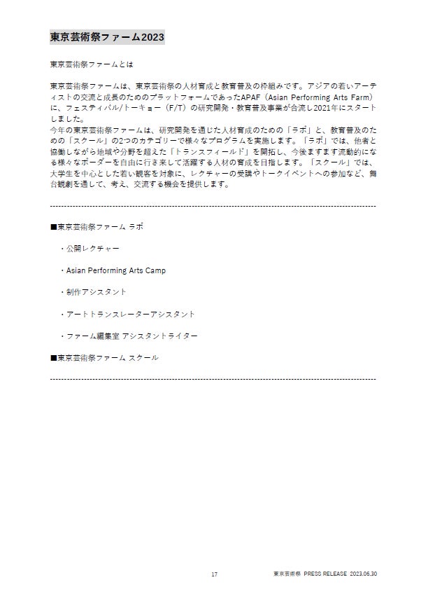 「東京芸術祭 2023」演⽬ラインアップ発表のご案内