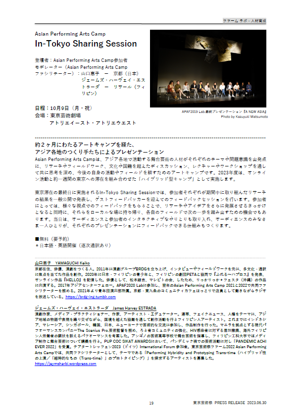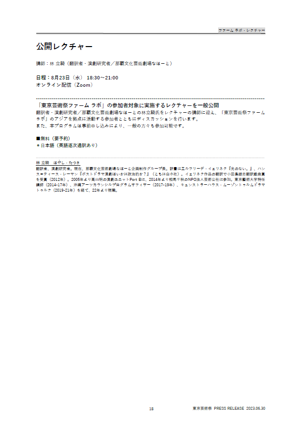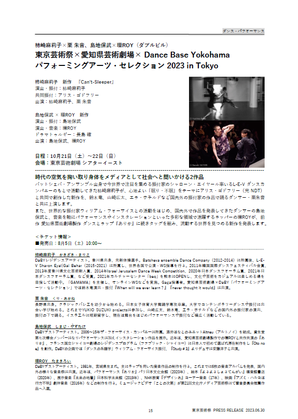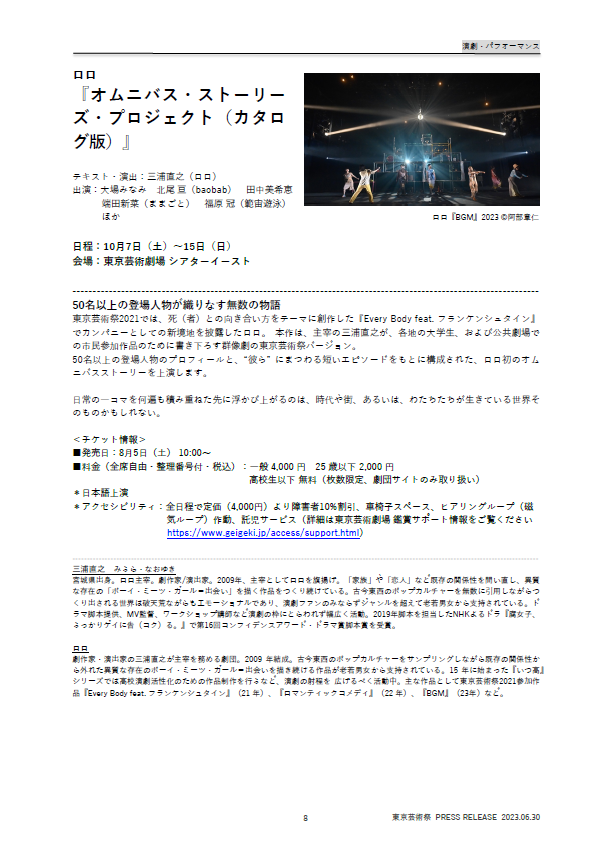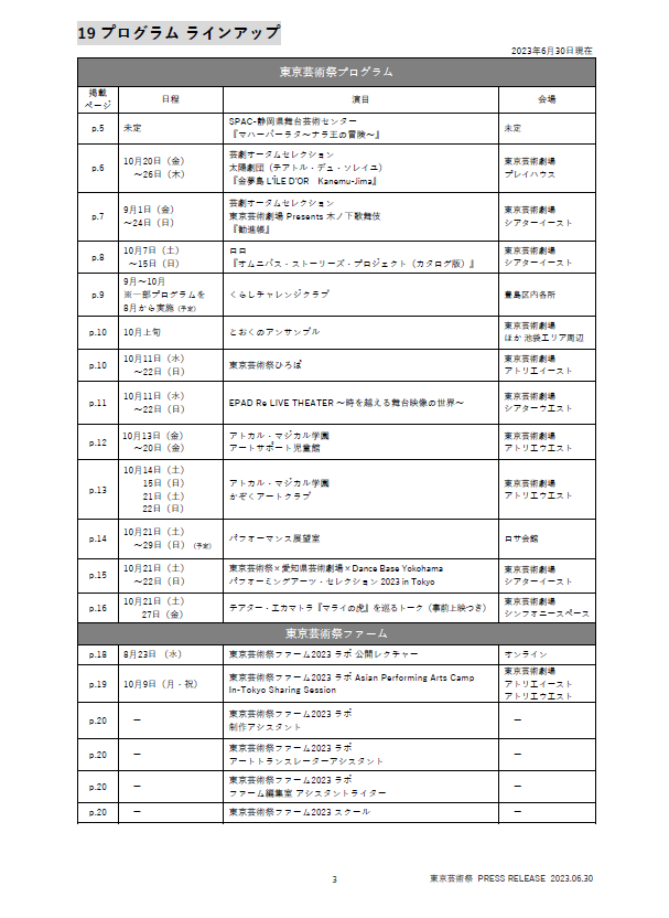 「東京芸術祭 2023」演⽬ラインアップ発表のご案内