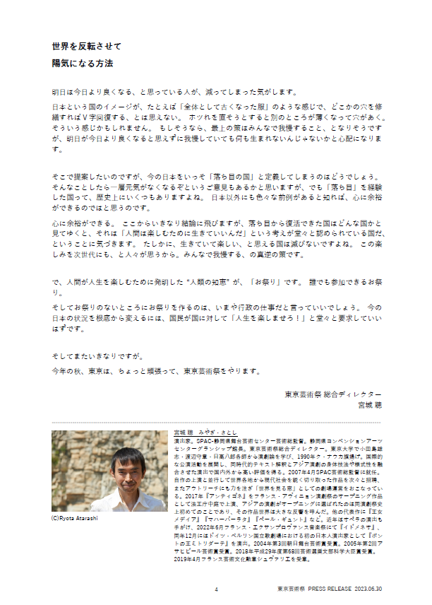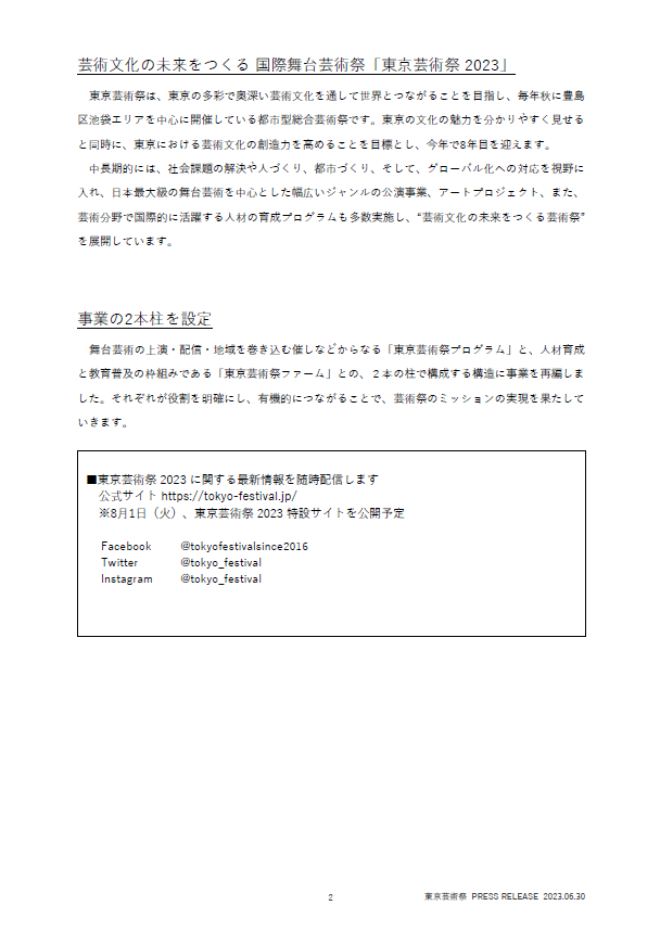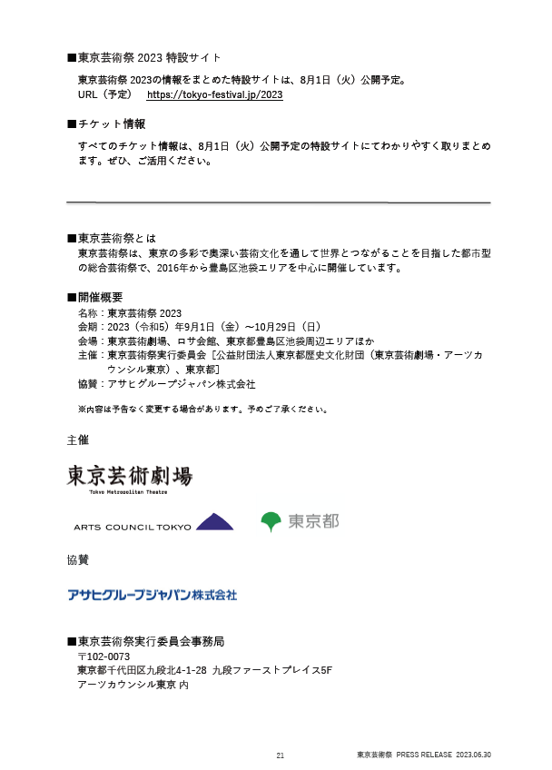 東京芸術祭実⾏委員会事務局広報 E-mail:press@tokyo-festival.jp