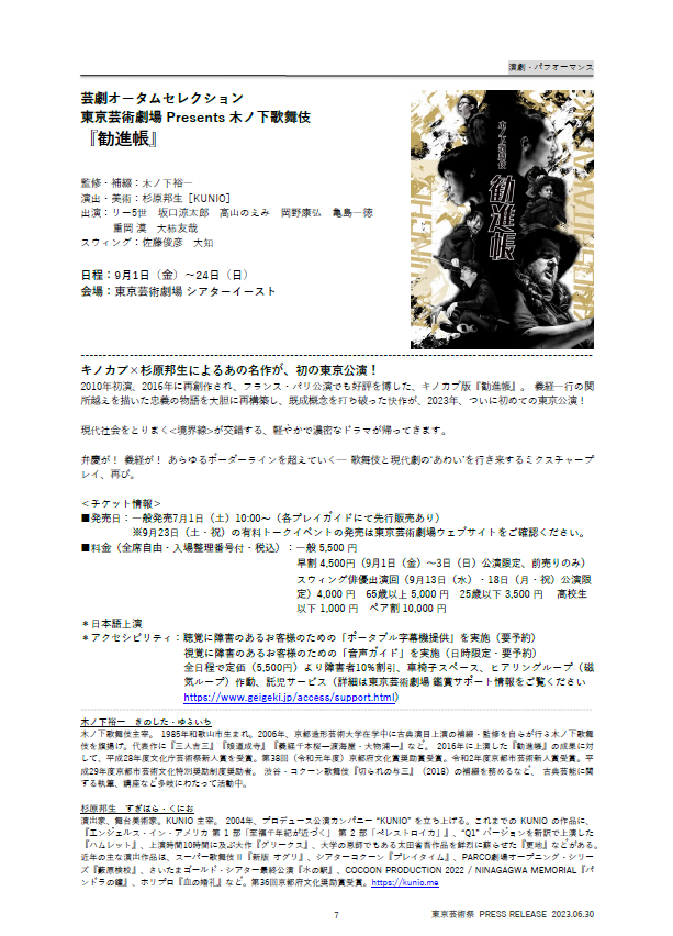 ▶現代における歌舞伎演⽬上演の可能性を発信する⽊ノ下歌舞伎を主宰する⽊ノ下裕 ⼀と演出家の杉原邦⽣がタッグを組んだ⽊ノ下歌舞伎『勧進帳』