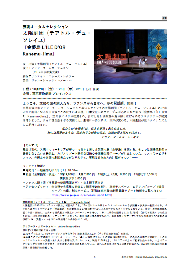 ▶22年ぶり2度⽬の来⽇公演となる太陽劇団(テアトル・デュ・ソレイユ)の『⾦夢島 L ʼ ILE D ʼ OR Kanemu Jima 』