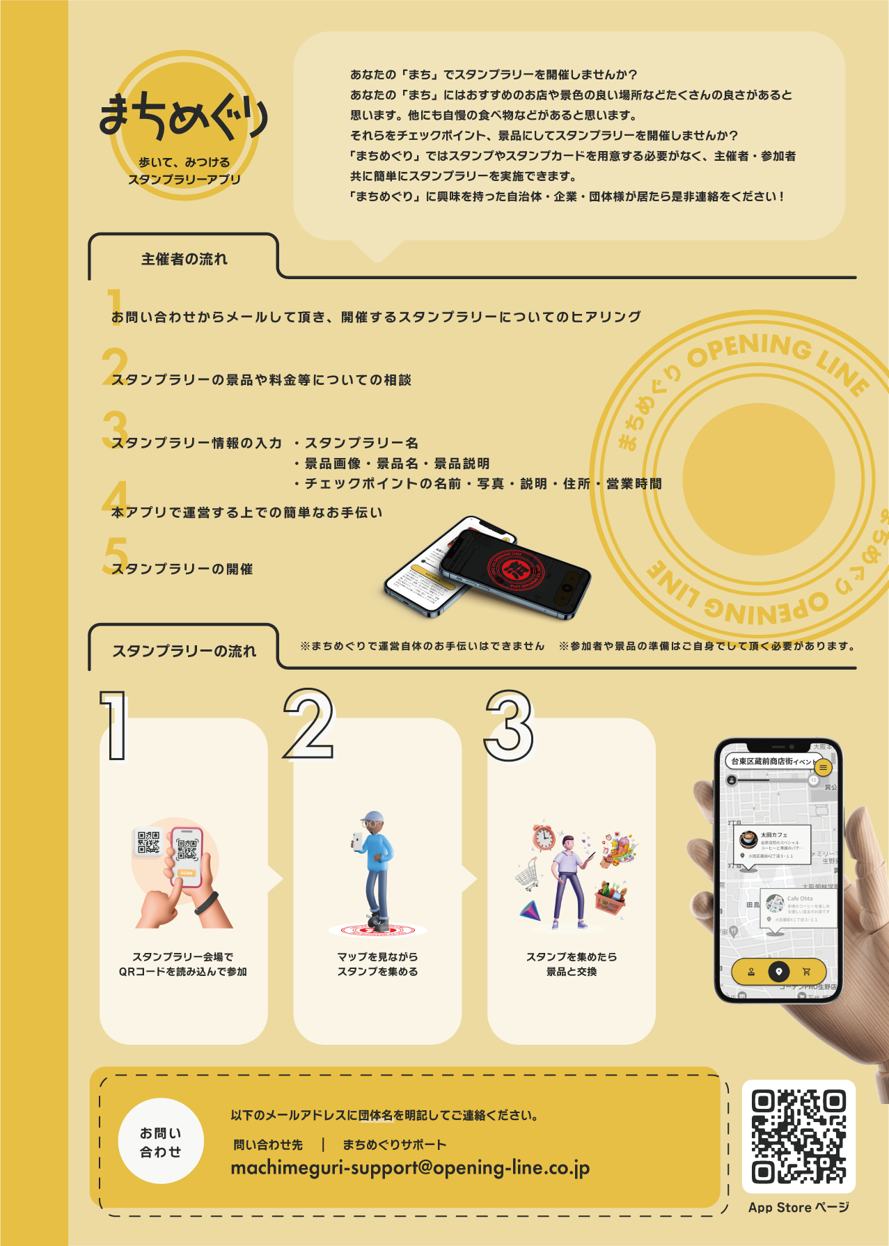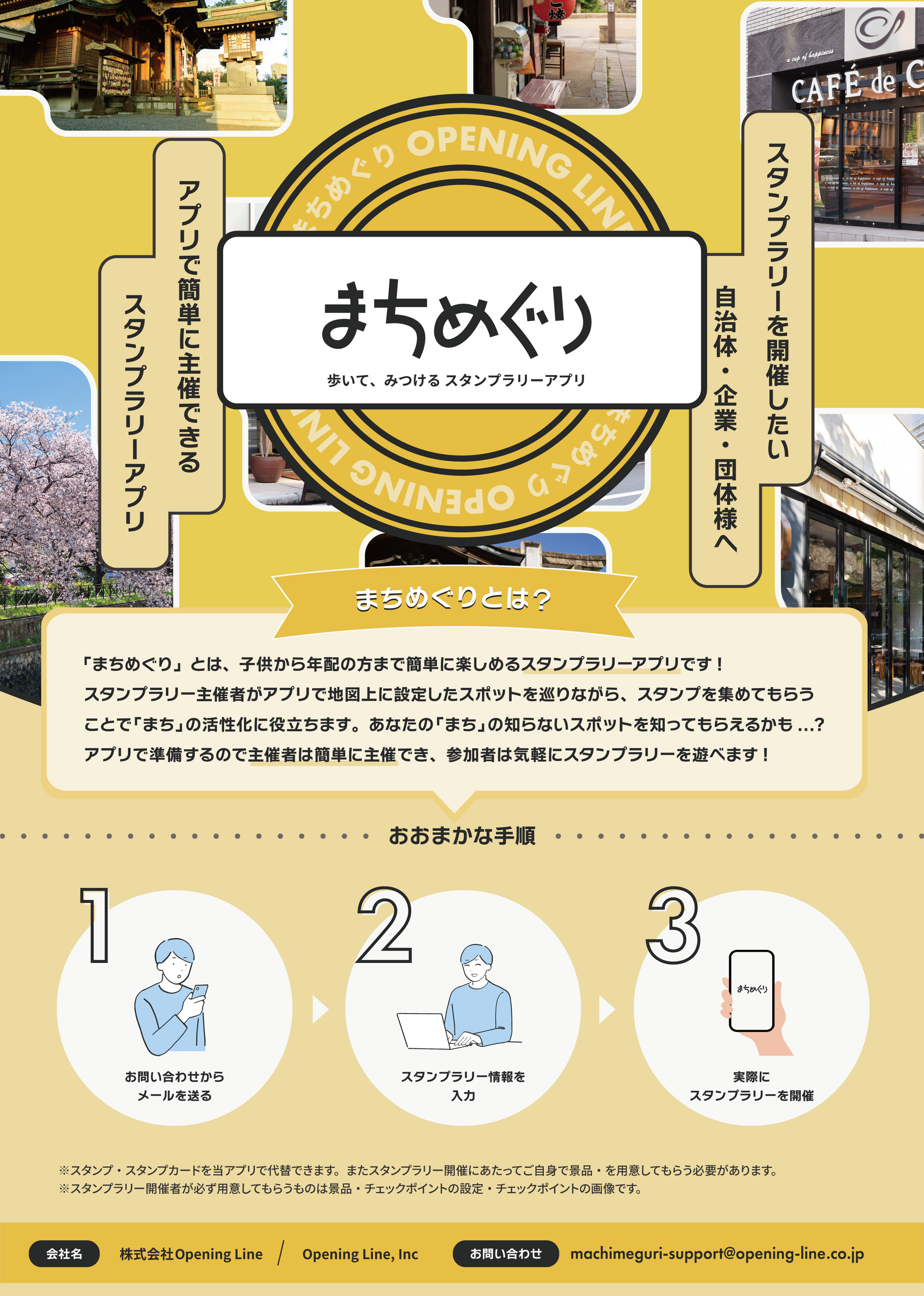 ブロックチェーン技術の社会実装に定評のある株式会社Opening Lineが提供する、操作方法がかんたんなスマホアプリ「まちめぐり」を活用し、高松や父母ヶ浜のアート作品が展示される様々なスポットめぐり、街歩きをより一層、楽しむしかけを企画します。ユーザー参加は無料で、貯めたスタンプに応じた特典が受けられます。