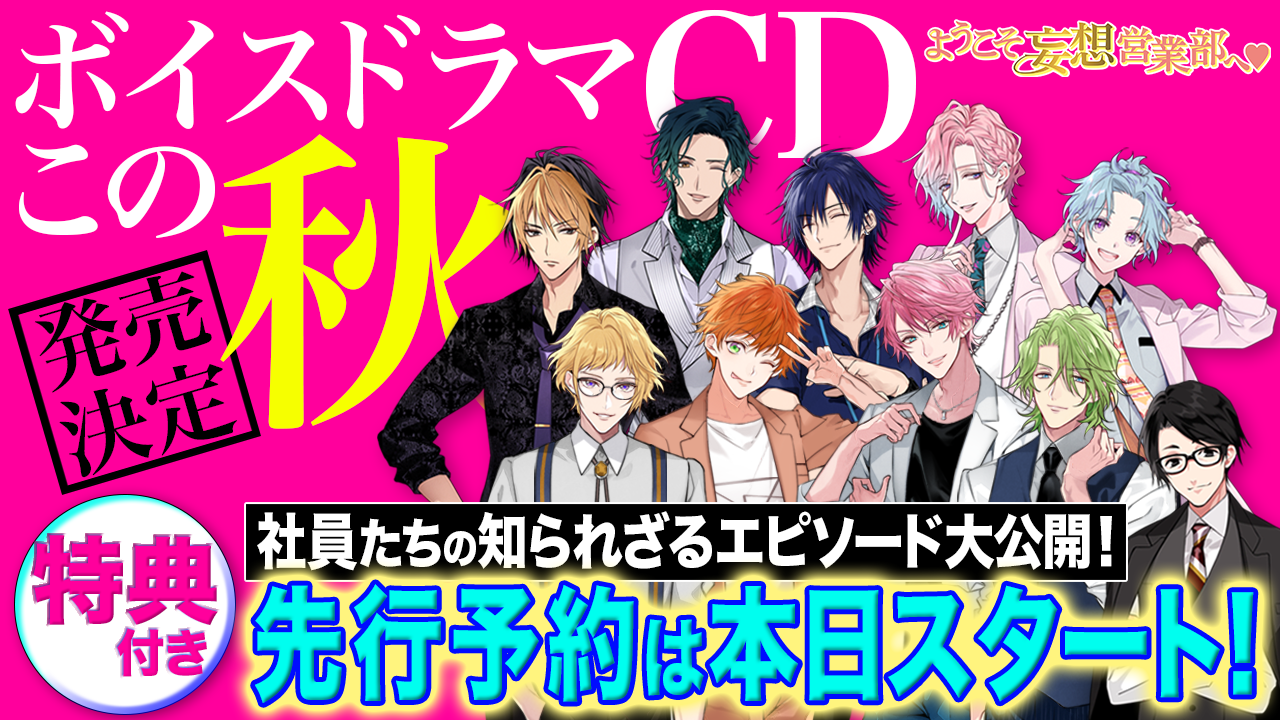 まだ、“社長”という発表のみで謎に包まれておりますが、今後ようこそ妄想営業部へ♥公式サイト/Twitter等で順次情報解禁していきますので、お見逃しなく!