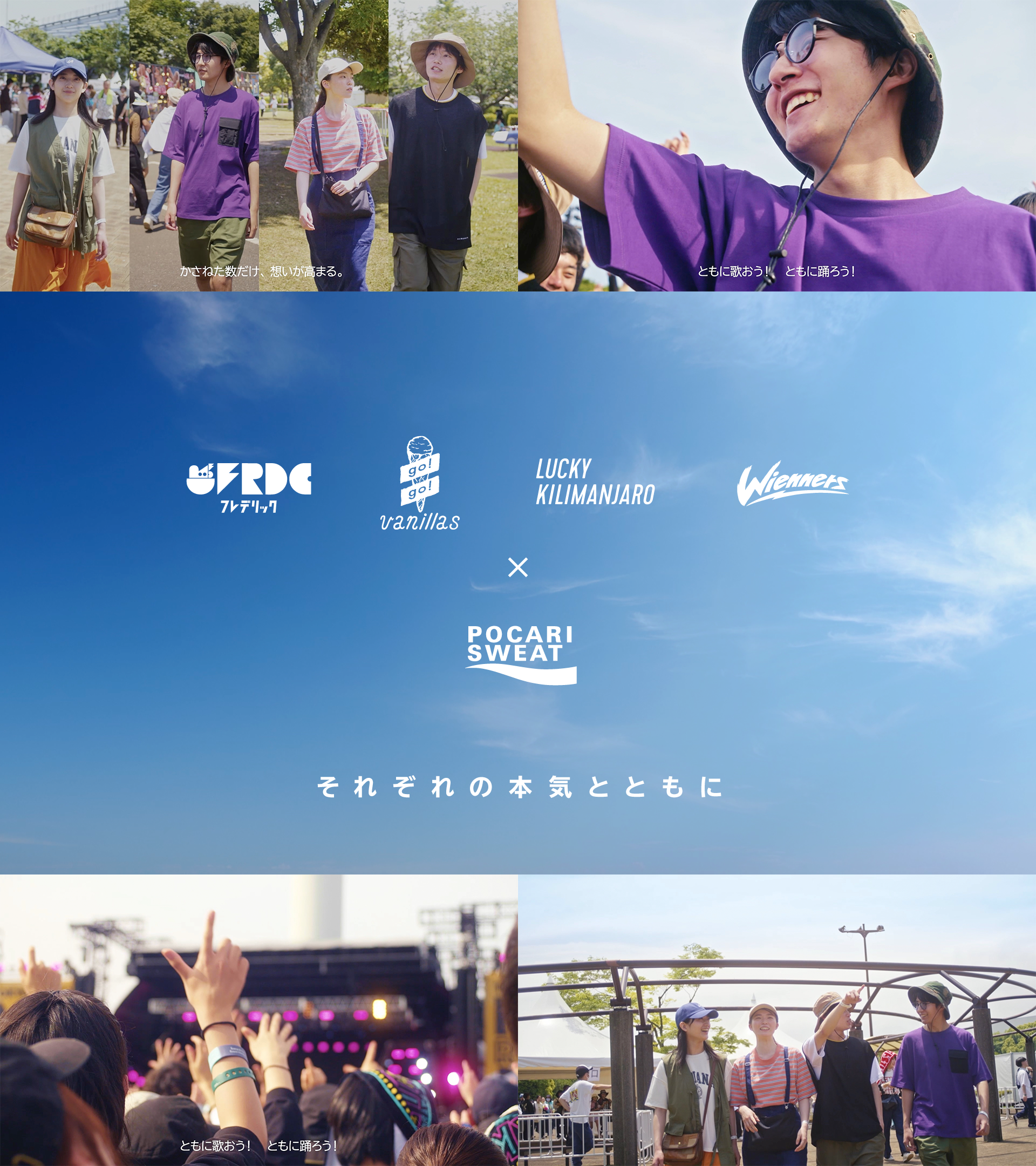 今年もさまざまな夏フェスに協賛する予定です。今回のコラボレーションムービーの上映はもちろん、ポカリスエットも美味しく冷やしてお待ちしておりますので、夏フェスにご来場の際はポカリスエットブースに、ぜひお立ち寄りください。